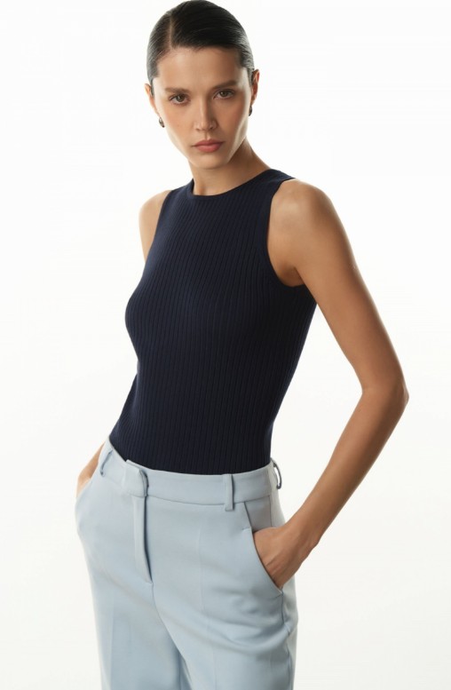 Лаконичный прилегающий топ классической длины. Облегающий крой подчеркивает фигуру, а фактурная вертикальная вязка зрительно вытягивает силуэт и стройнит. Круглая горловина и манжеты оформлены обтачкой в тон. Материал – мягкий трикотаж из 100% вискозы. Топ представлен в базовых и акцентный цветах, поэтому вы сможете собрать множество нейтральных и ярких луков. 72% вискоза, 28% нейлон