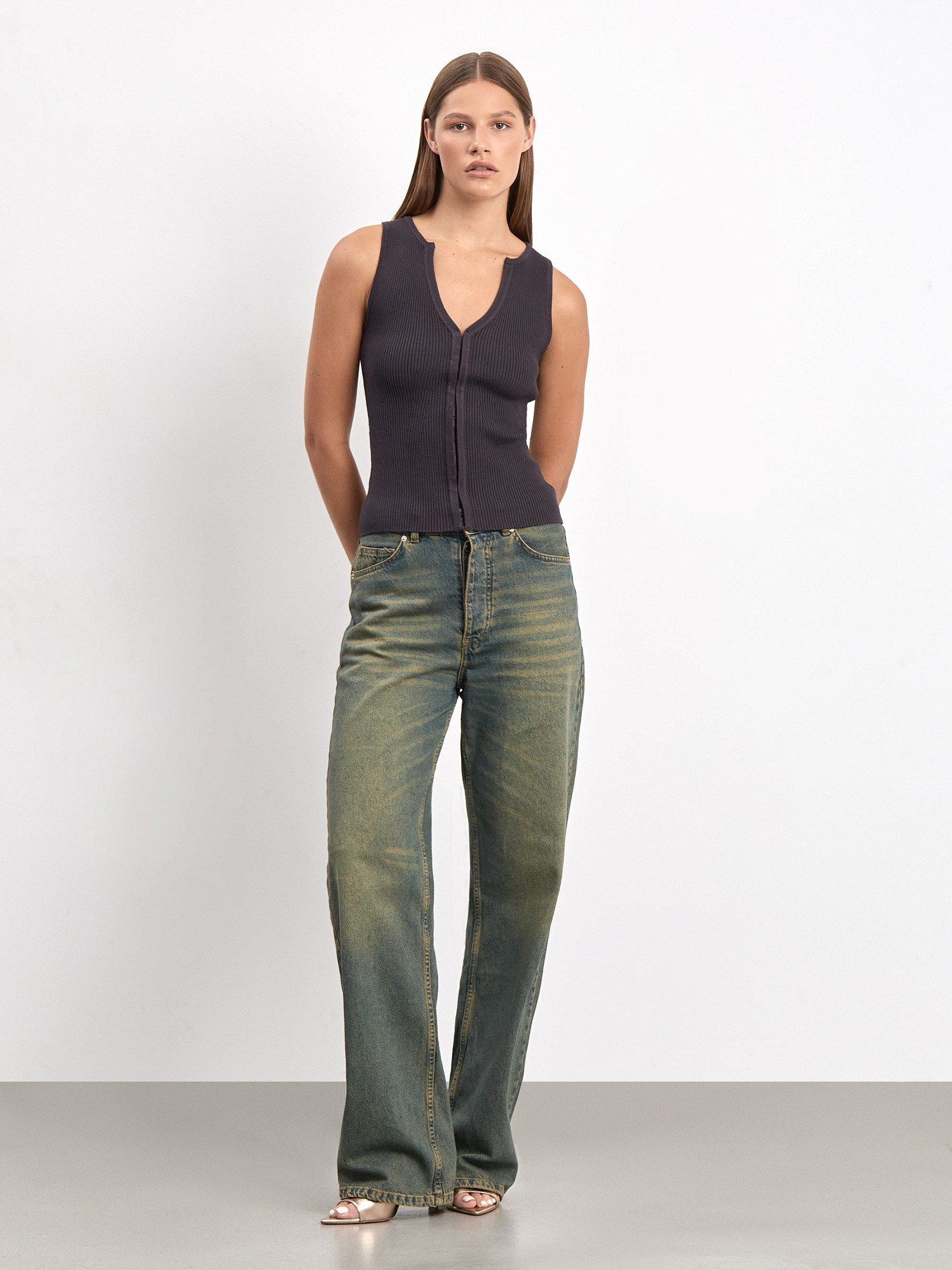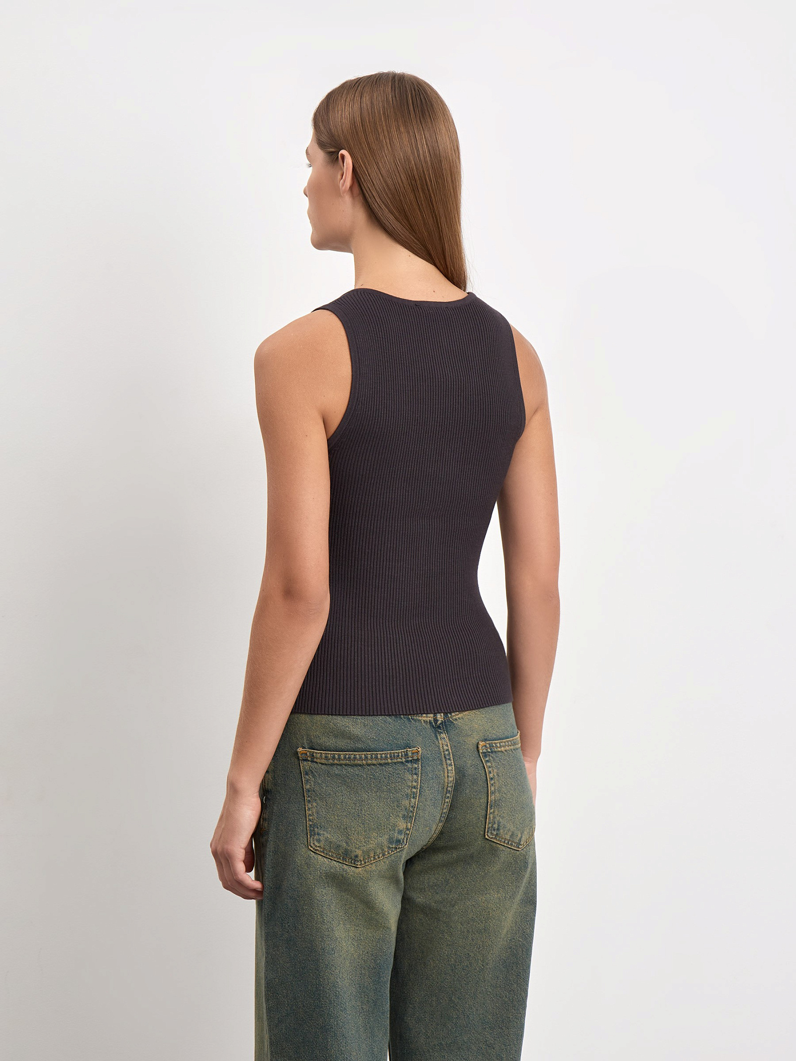 Топ на крючках — удобная основа для образов на каждый день. Они получаются современными и комфортными. Вещь приятна к телу: в составе дышащая и комфортная вискоза с нейлоном для ещё большей мягкости. Облегающая модель дополнена модным вырезом. Темно-серый цвет позволяет легко вписать вещь в базовый гардероб. Топ сочетается с любым денимом и экокожей.