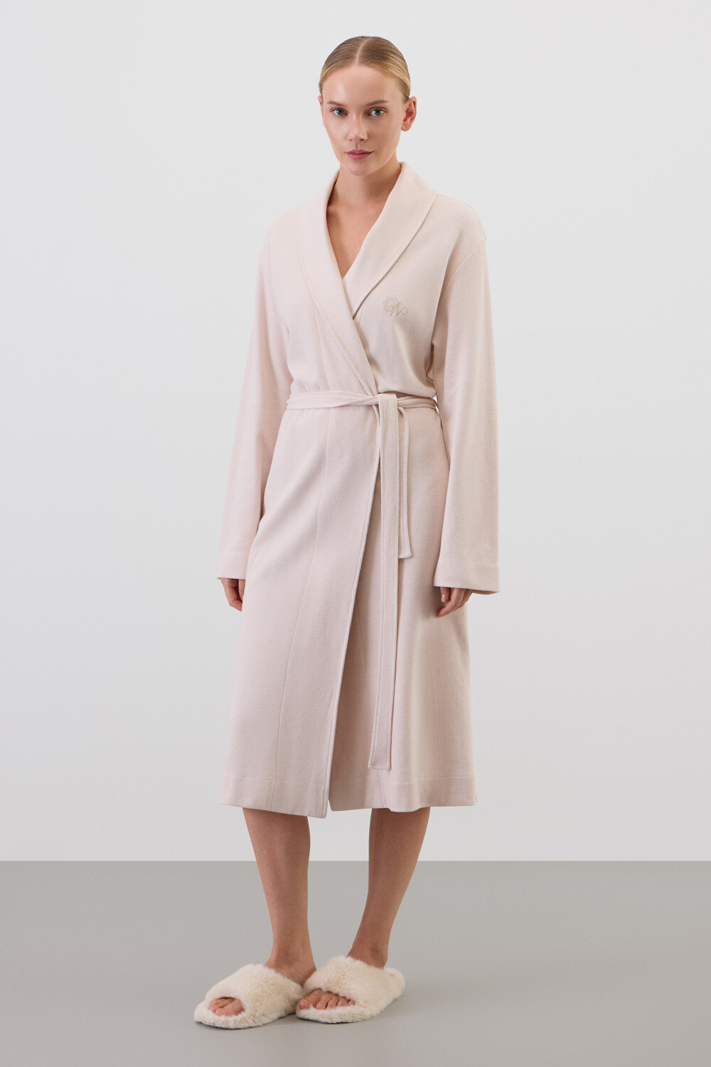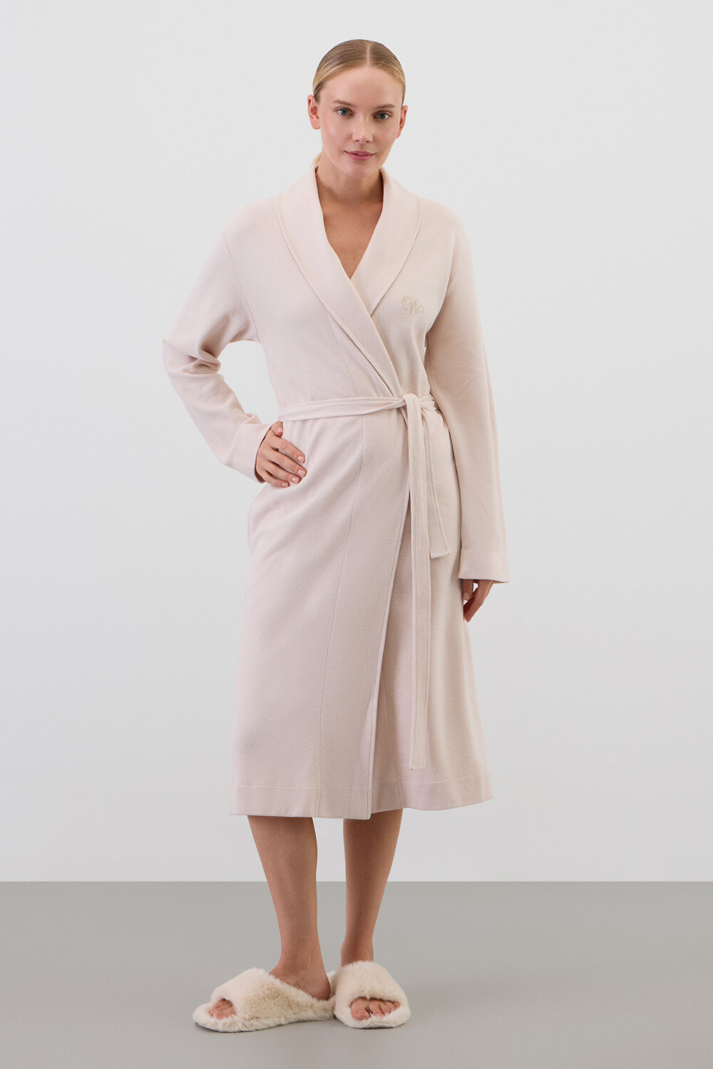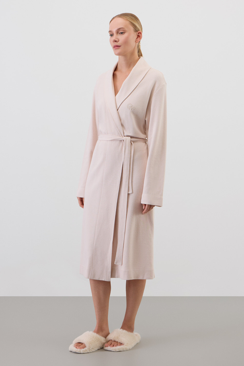 Халат из мягкого 100% хлопка с обработкой пич эффектом подарит атмосферу домашнего уюта и комфорта, придавая изделию бархатистость и мягкость.