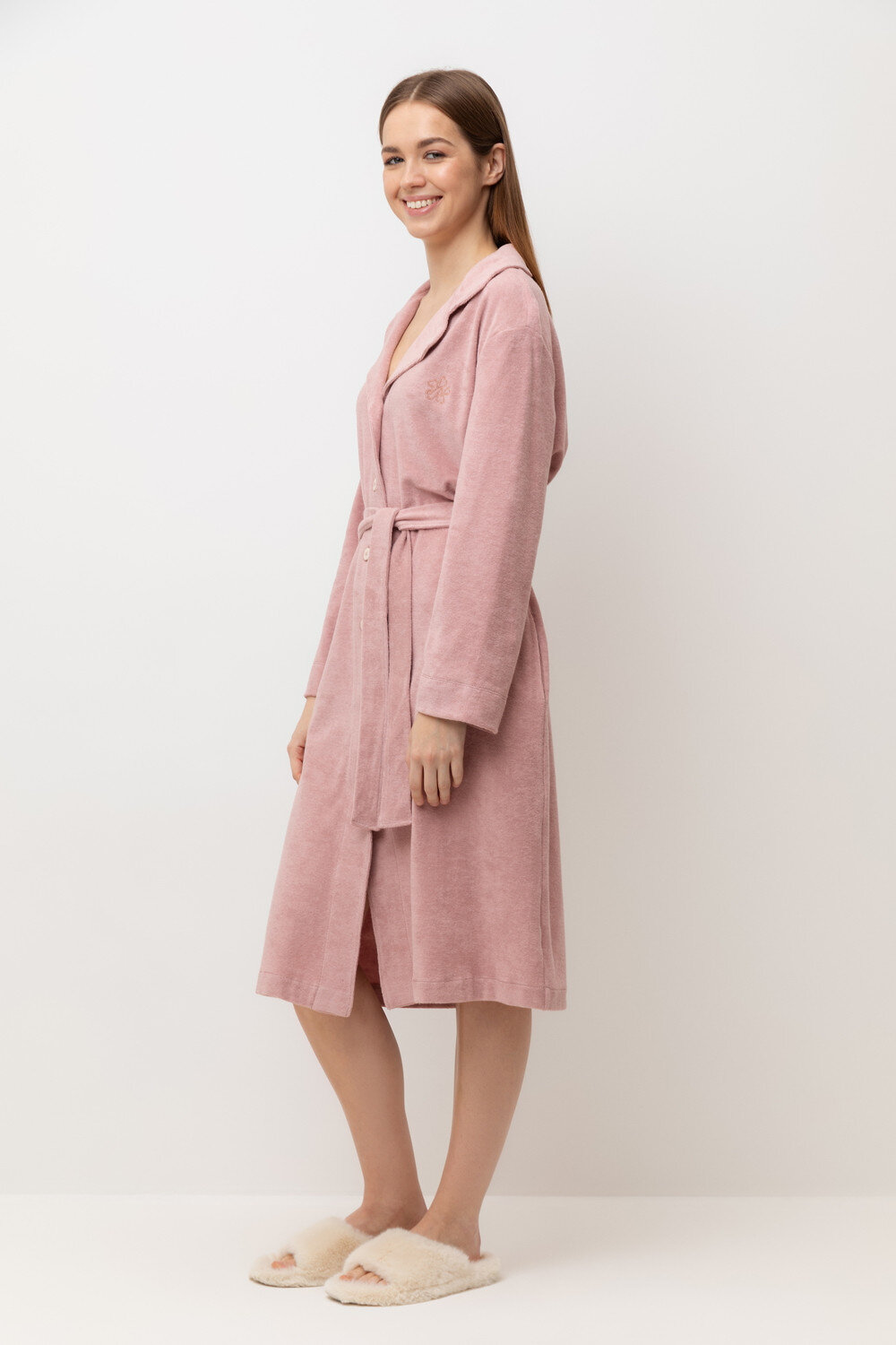 Халат из мягкого 100% махрового хлопка подарит атмосферу домашнего уюта и комфорта, благодаря бархатистой и мягкой фактуре