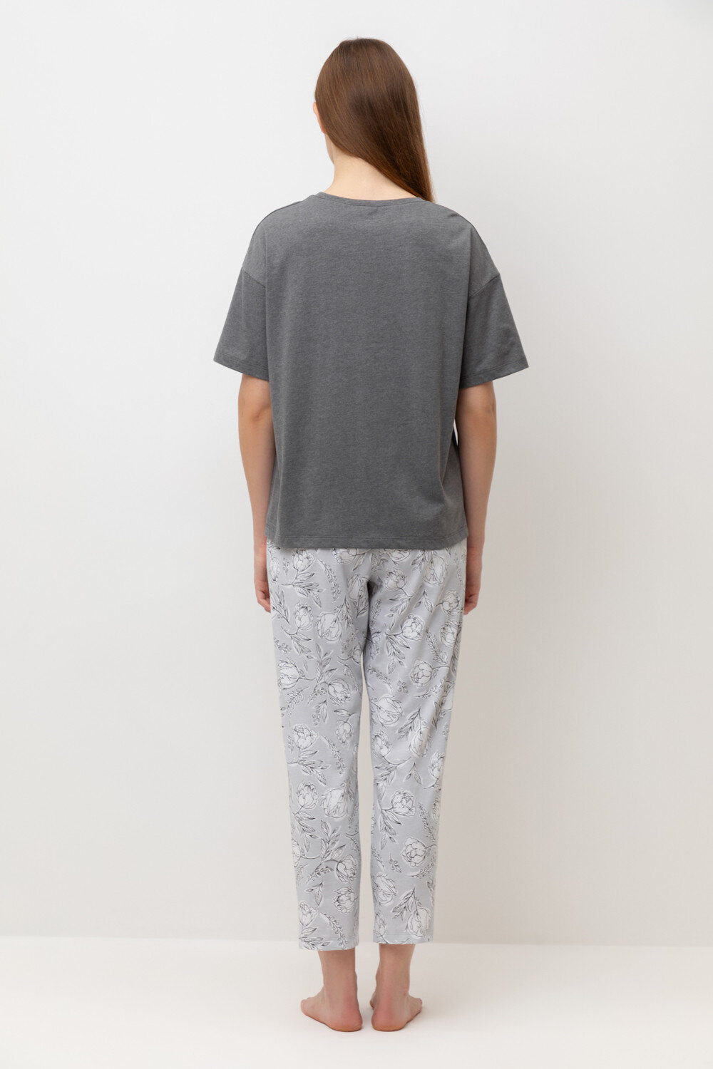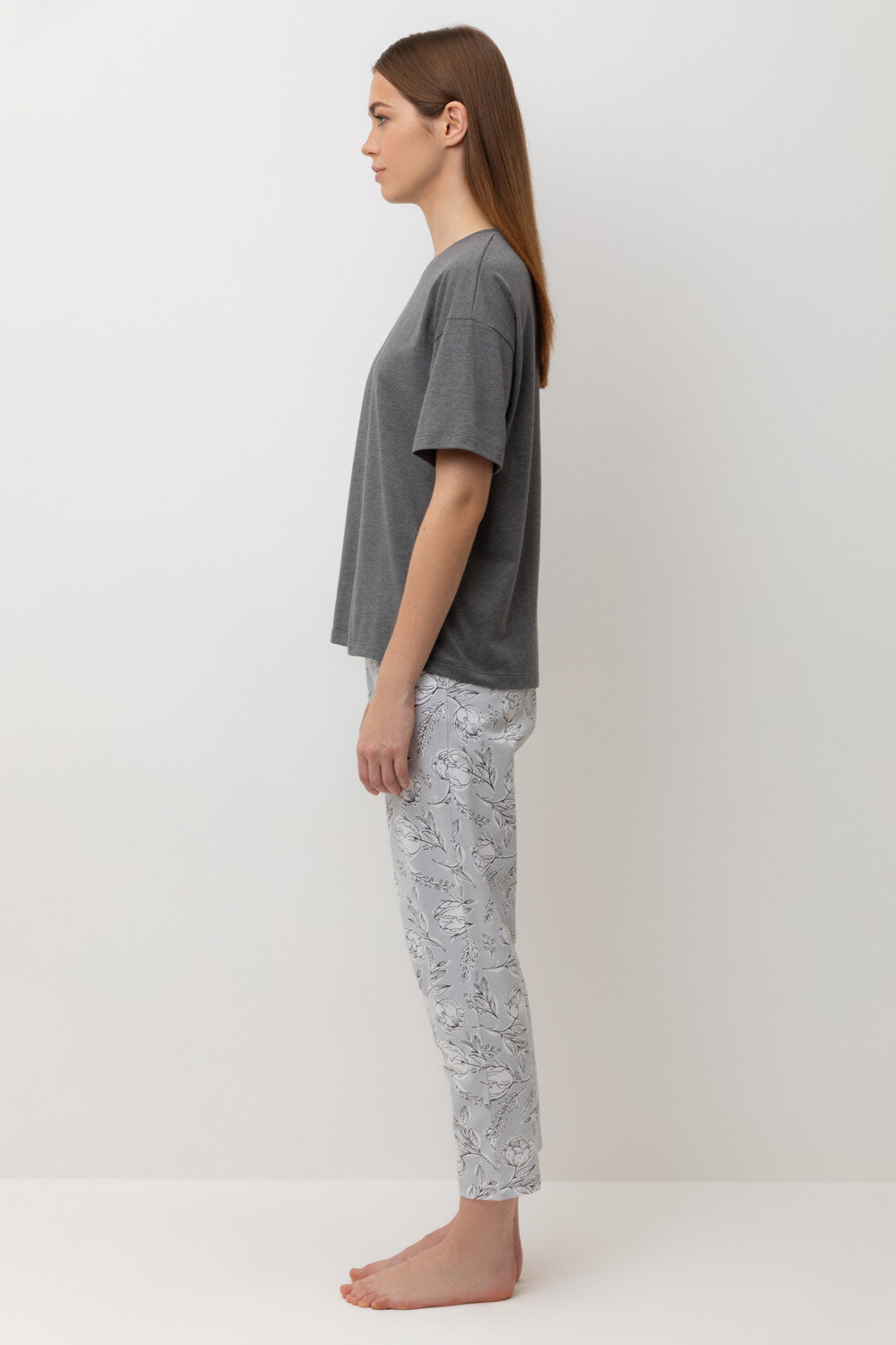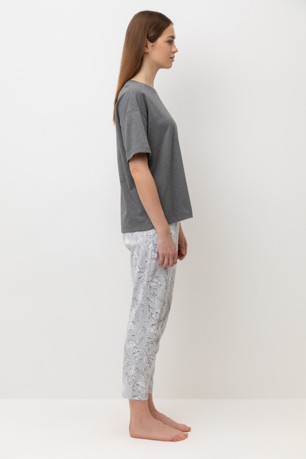 Легкий комплект для комфортного сна и отдыха. Свободная футболка с принтом и спущенной линией плеча комфортно садится по фигуре. Укороченные брюки с удобными боковыми карманами выполнены из набивного трикотажа. Гладкий материал приятен к телу и позволяет коже дышать.