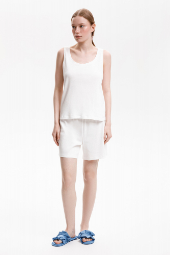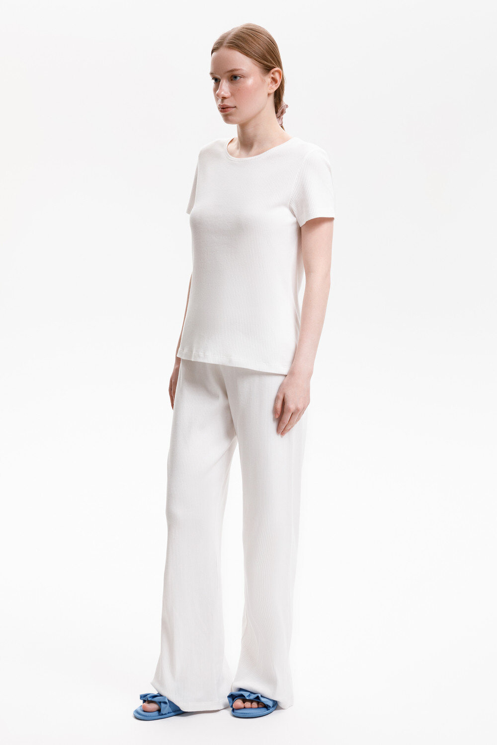 Комплект из нежнейшего высококачественного трикотажного полотна с добавлением спандекса. За счет фактуры переплетения и специальных обработок сохраняет силуэт и форму. Свободный крой футболки и мягкий пояс на брюках обеспечивают легкость и свободу движений.