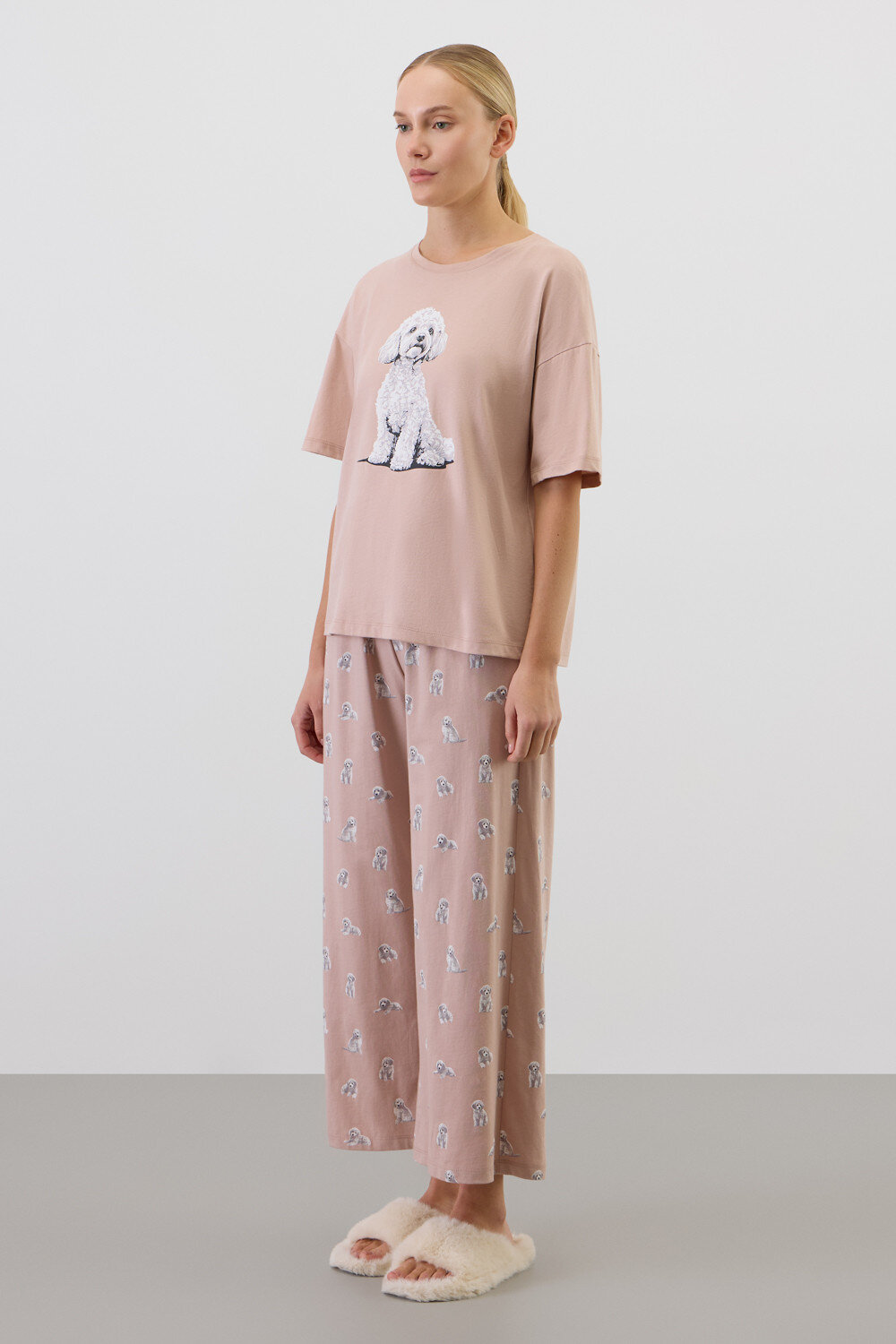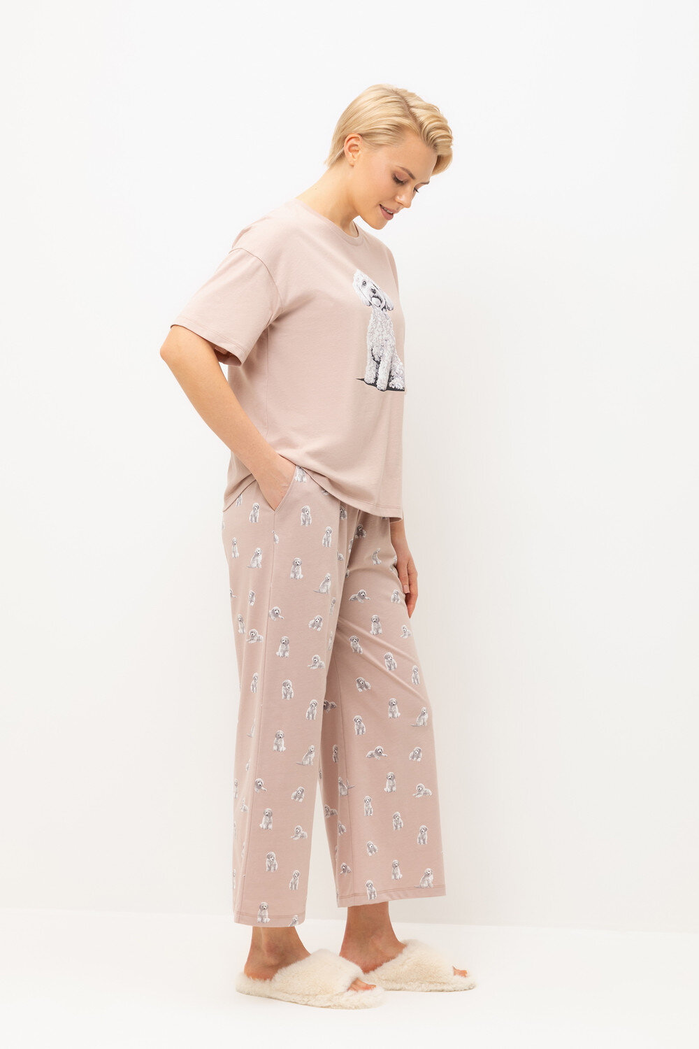 Комплект из высококачественного гребенного хлопка. Мягкий на ощупь принт на футболке выполнен на основе водных красок, что обеспечивает устойчивость к многократным стиркам. Комплект дополняют укороченные брюки с удобным поясом на резинке и практичными карманами.