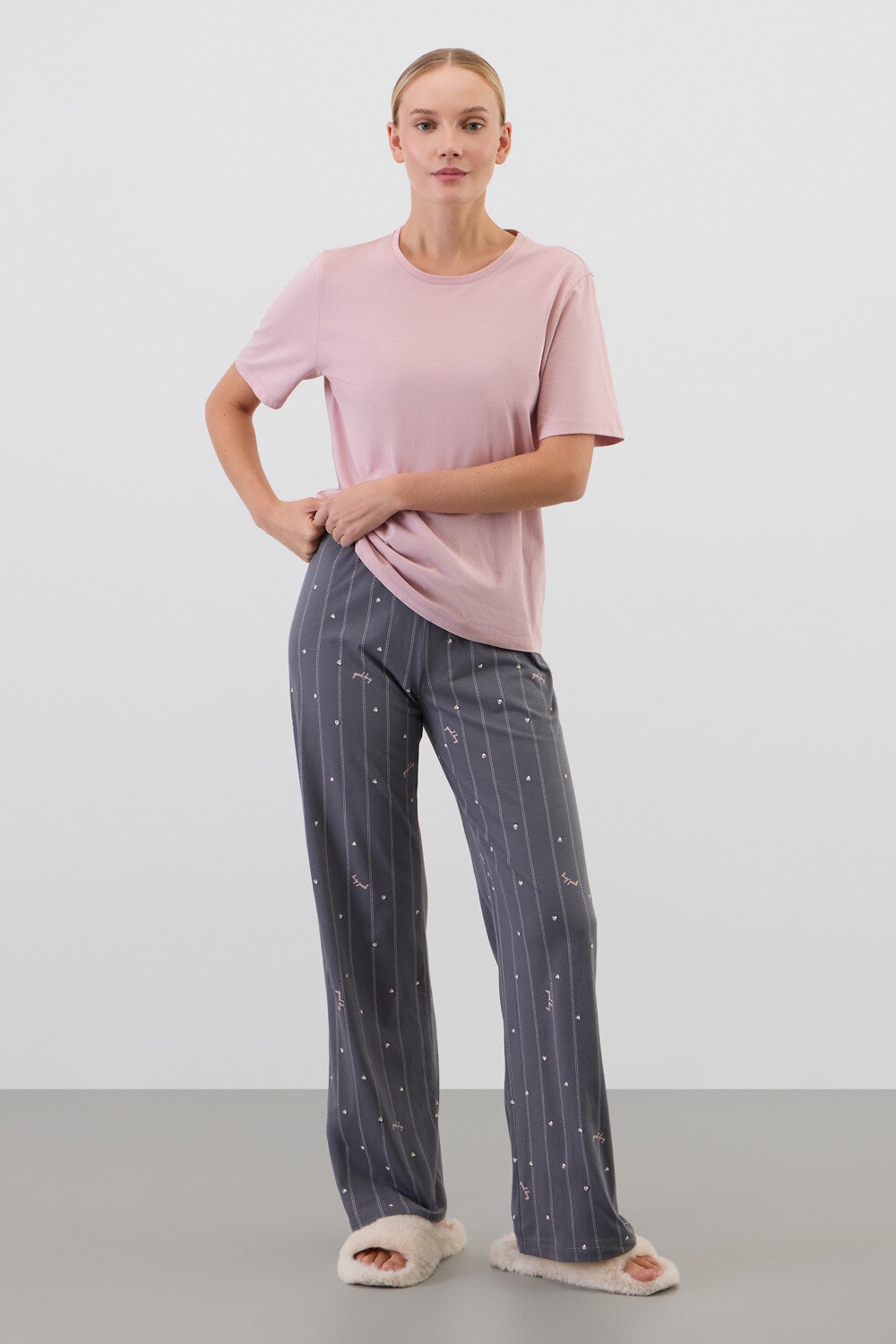 Комплект из высококачественного гребенного хлопка. Брюки с удобным поясом на резинке добавляют практичности и удобства.