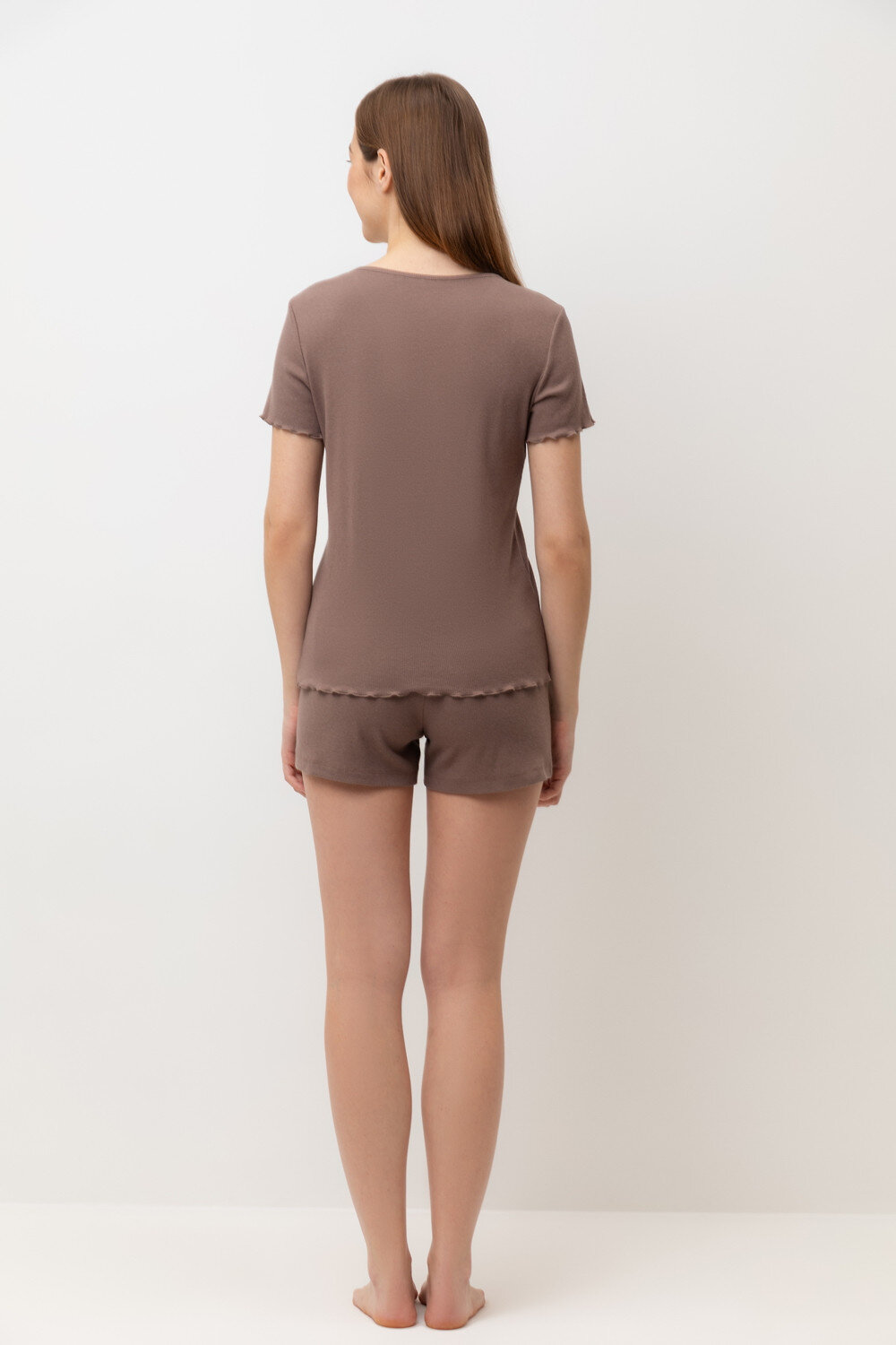 Комплект из нежного хлопкового трикотажа в рубчик. Мягкий и эластичный на ощупь трикотаж обеспечивает легкость и приятное облегание.