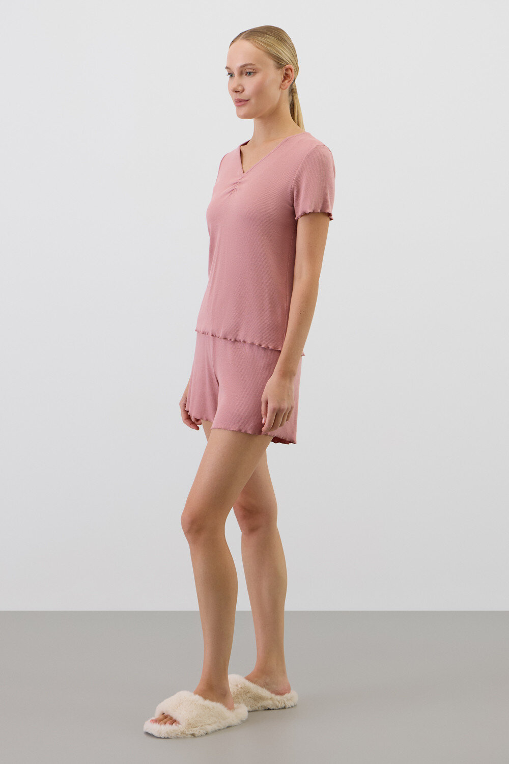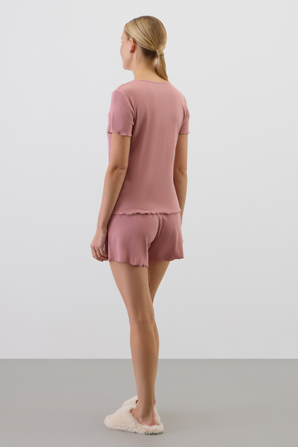 Комплект из нежного хлопкового трикотажа в рубчик. Мягкий и эластичный на ощупь трикотаж обеспечивает легкость и приятное облегание.
