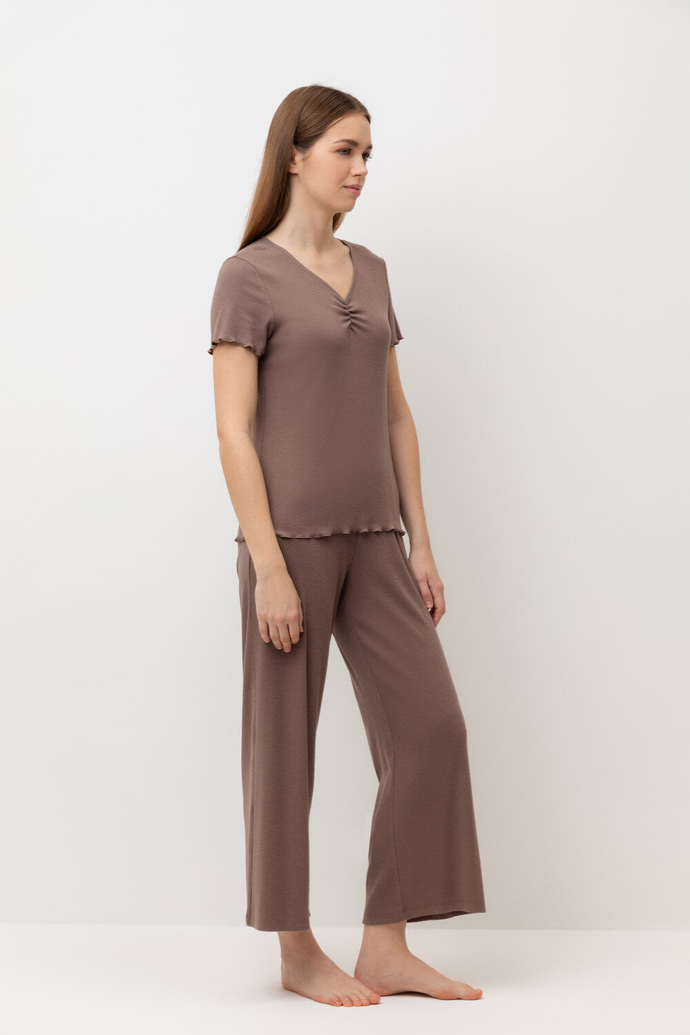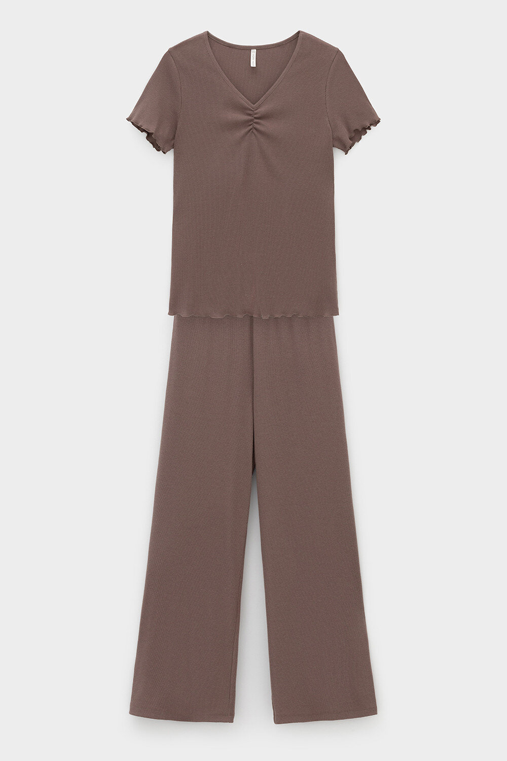 Комплект из нежного хлопкового трикотажа в рубчик. Мягкий и эластичный на ощупь трикотаж обеспечивает легкость и приятное облегание.