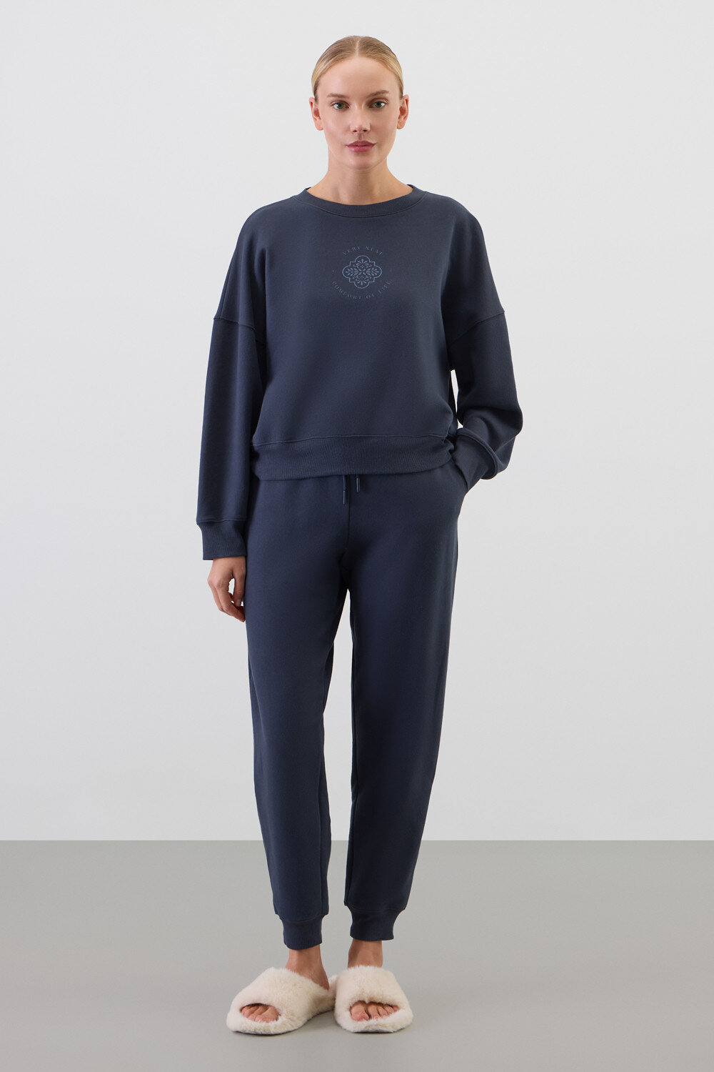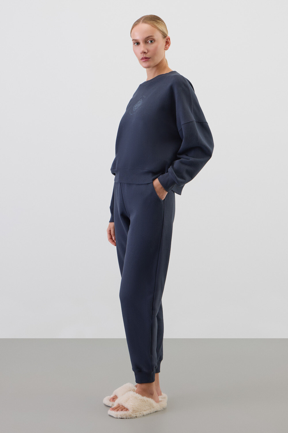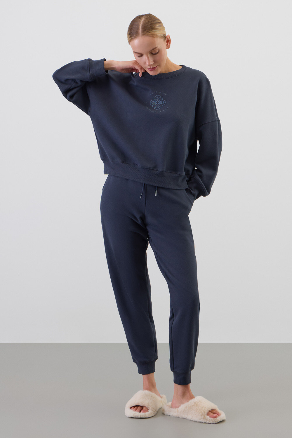 Комплект из 100% петельчатого футера. Мягкий пояс и спортивный силуэт заставят вас влюбиться в его комфорт!