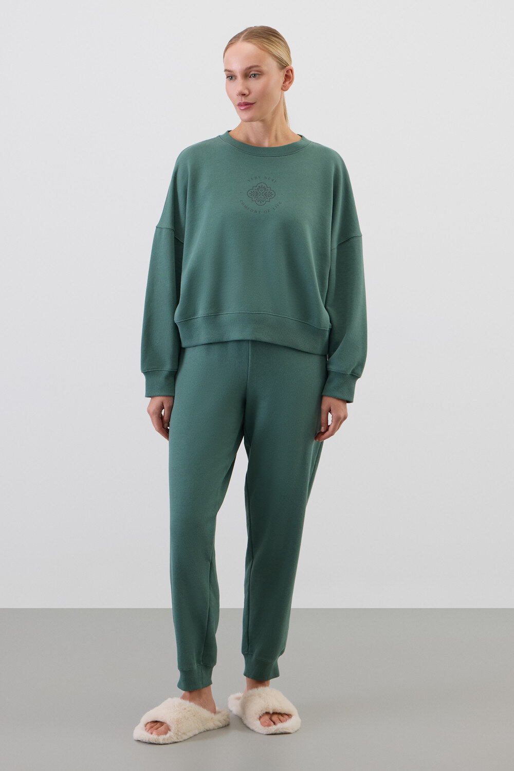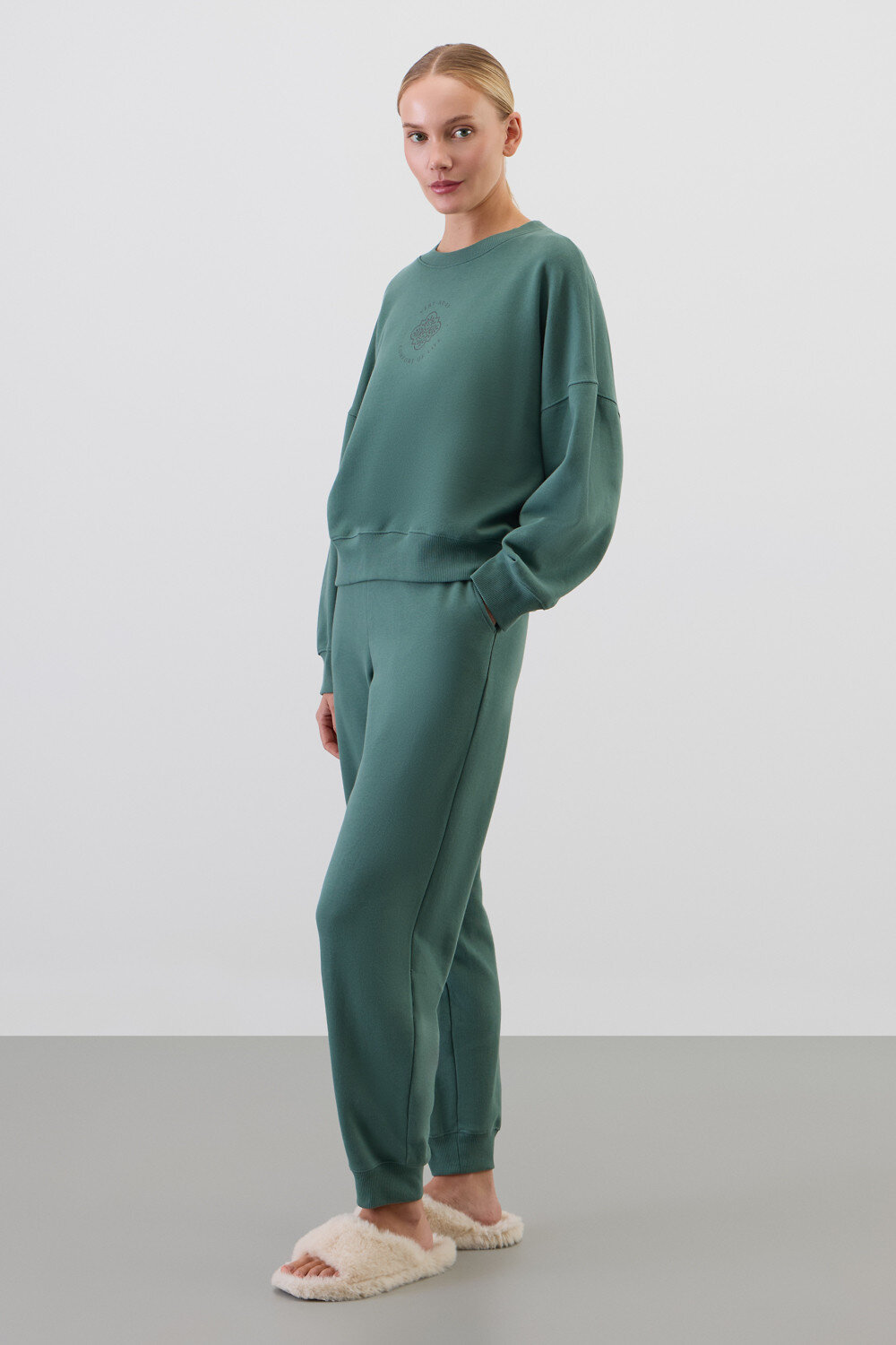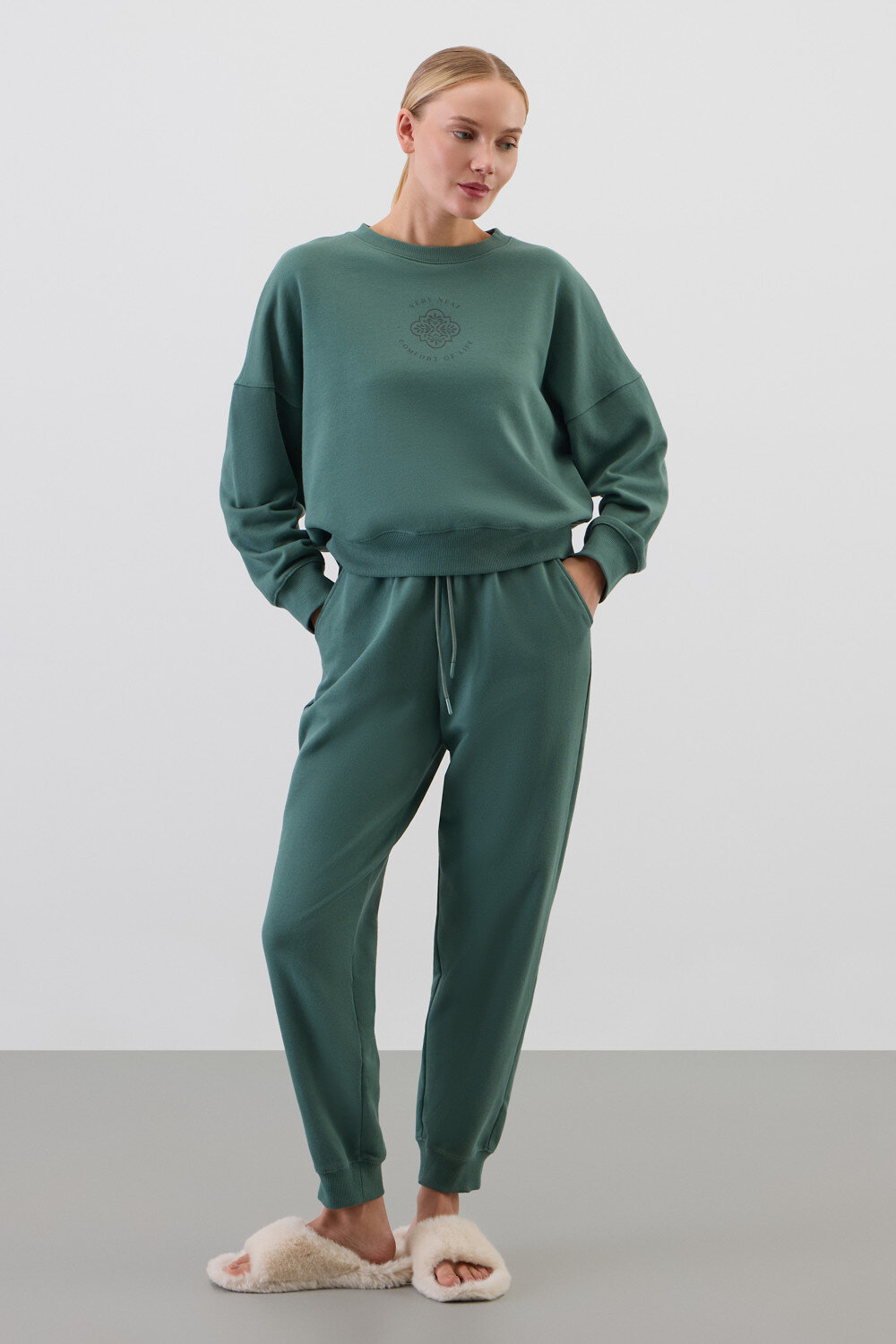 Комплект из 100% петельчатого футера. Мягкий пояс и спортивный силуэт заставят вас влюбиться в его комфорт!