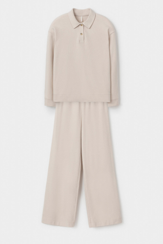 Комплект из объемного трикотажа с добавлением эластичных волокон. Свободный крой обеспечивает легкость и свободу движений.
