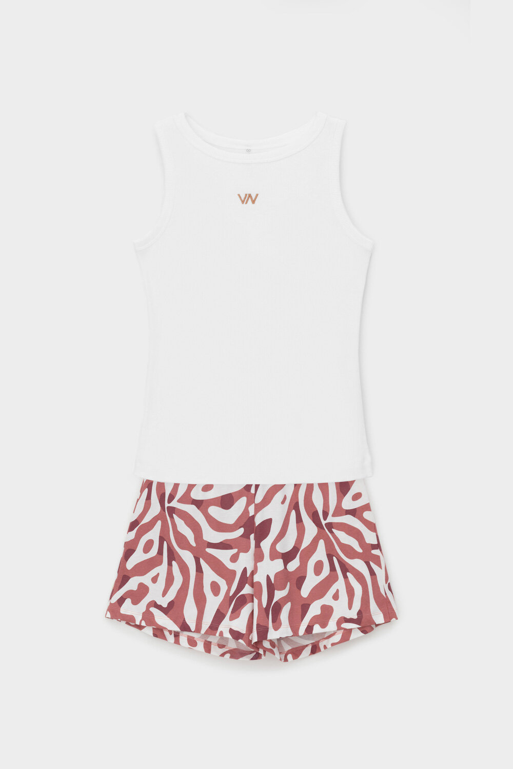 Топ из мягкого эластичного трикотажа в рубчик и шорты из высококачественного гребенного хлопка - это идеальное сочетание уютного комфорта.