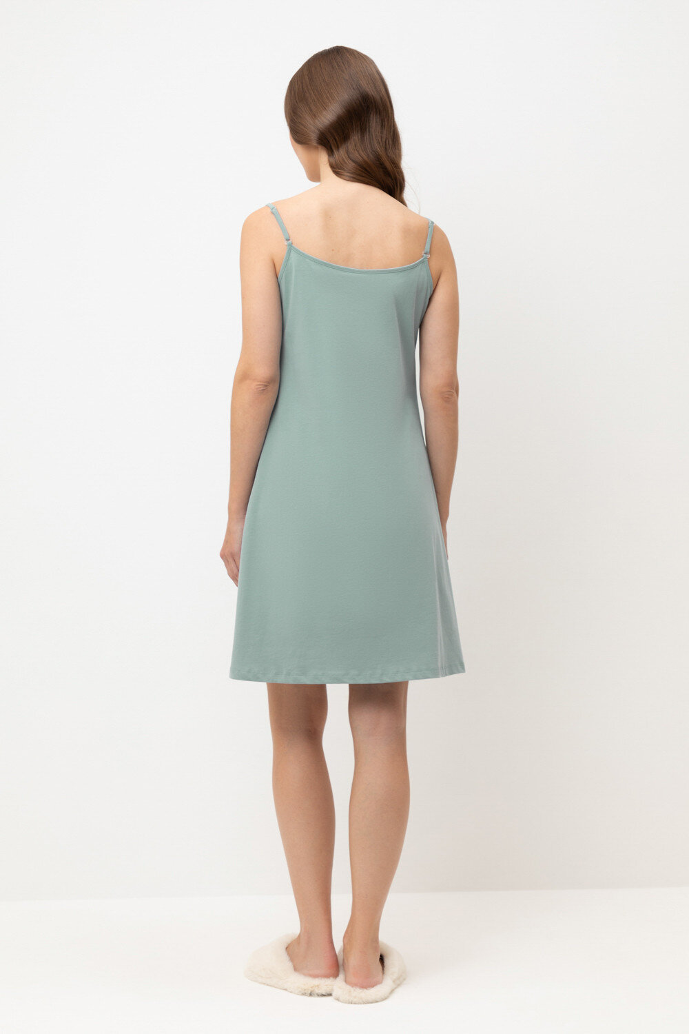 Элегантная женская сорочка с регулируемыми бретелями для комфортного сна. На груди декоративные пуговицы. Гладкий материал приятен к телу и позволяет коже дышать.