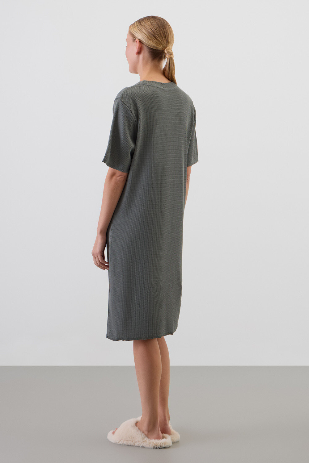 Комфортная сорочка выполнена из объемного трикотажа с добавлением эластичных волокон. Свободный крой добавляет комфорт для домашнего отдыха