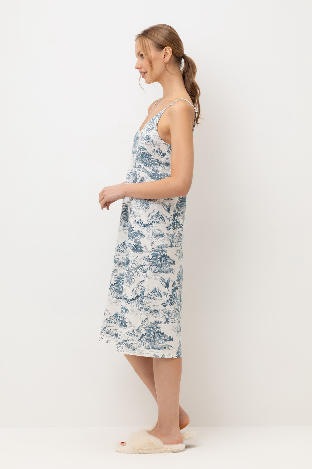 Сорочка из хлопка с нежнейшим модалом. Регулируемые бретели позволяют подстроить их под ваши предпочтения, а свободный крой добавляет комфорта во время сна.