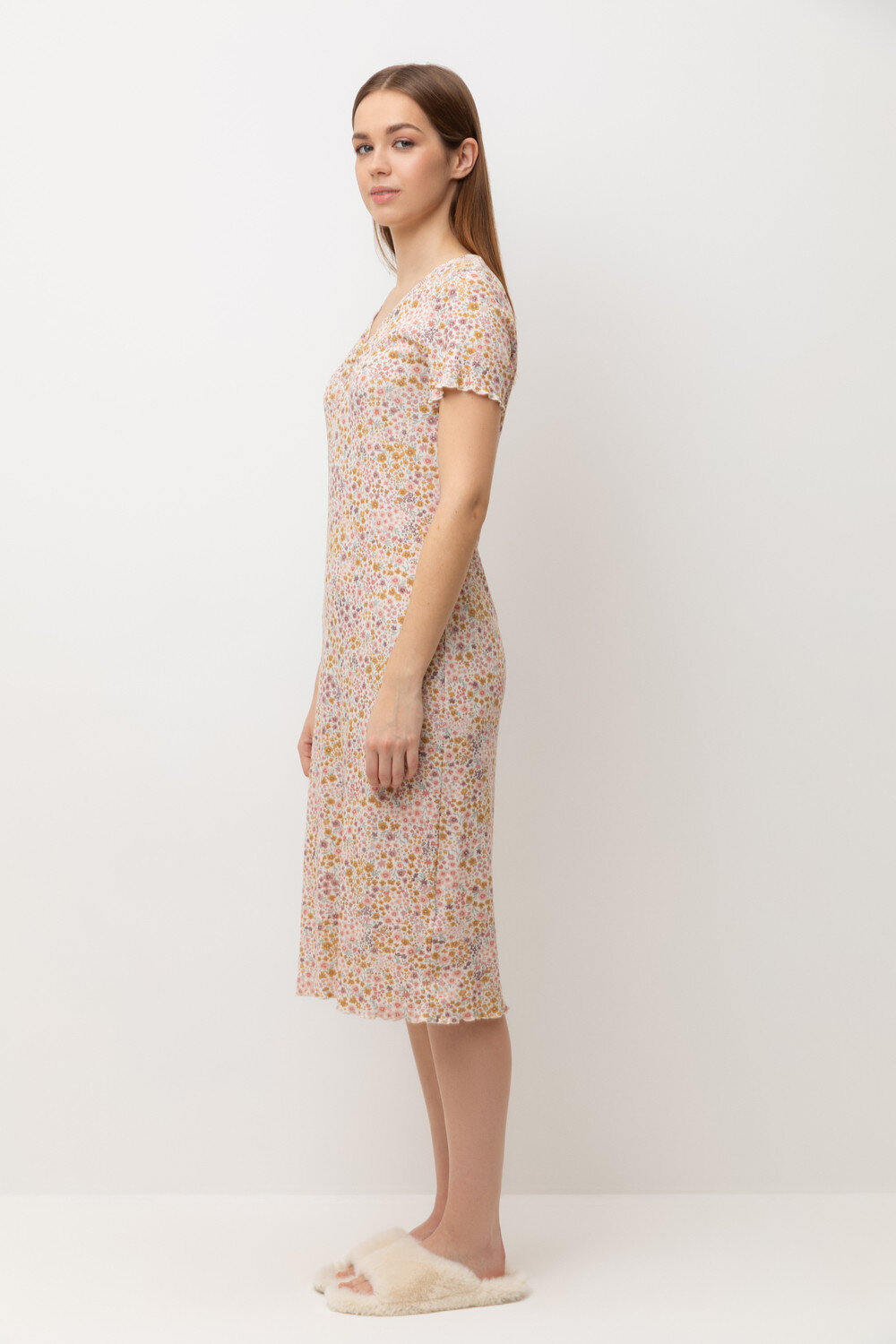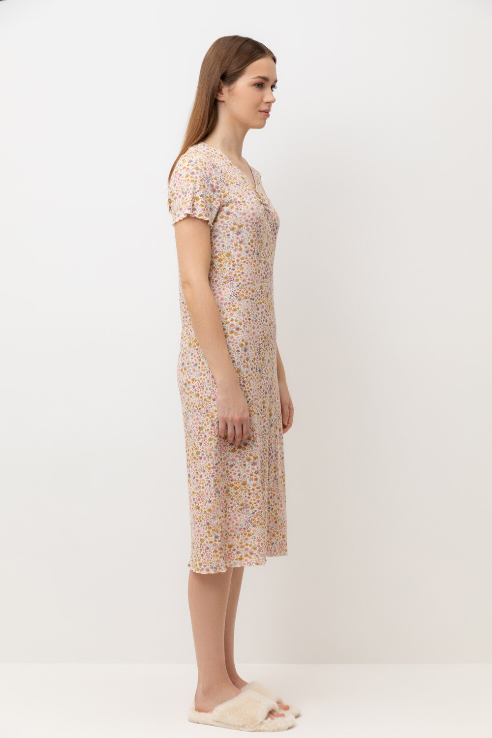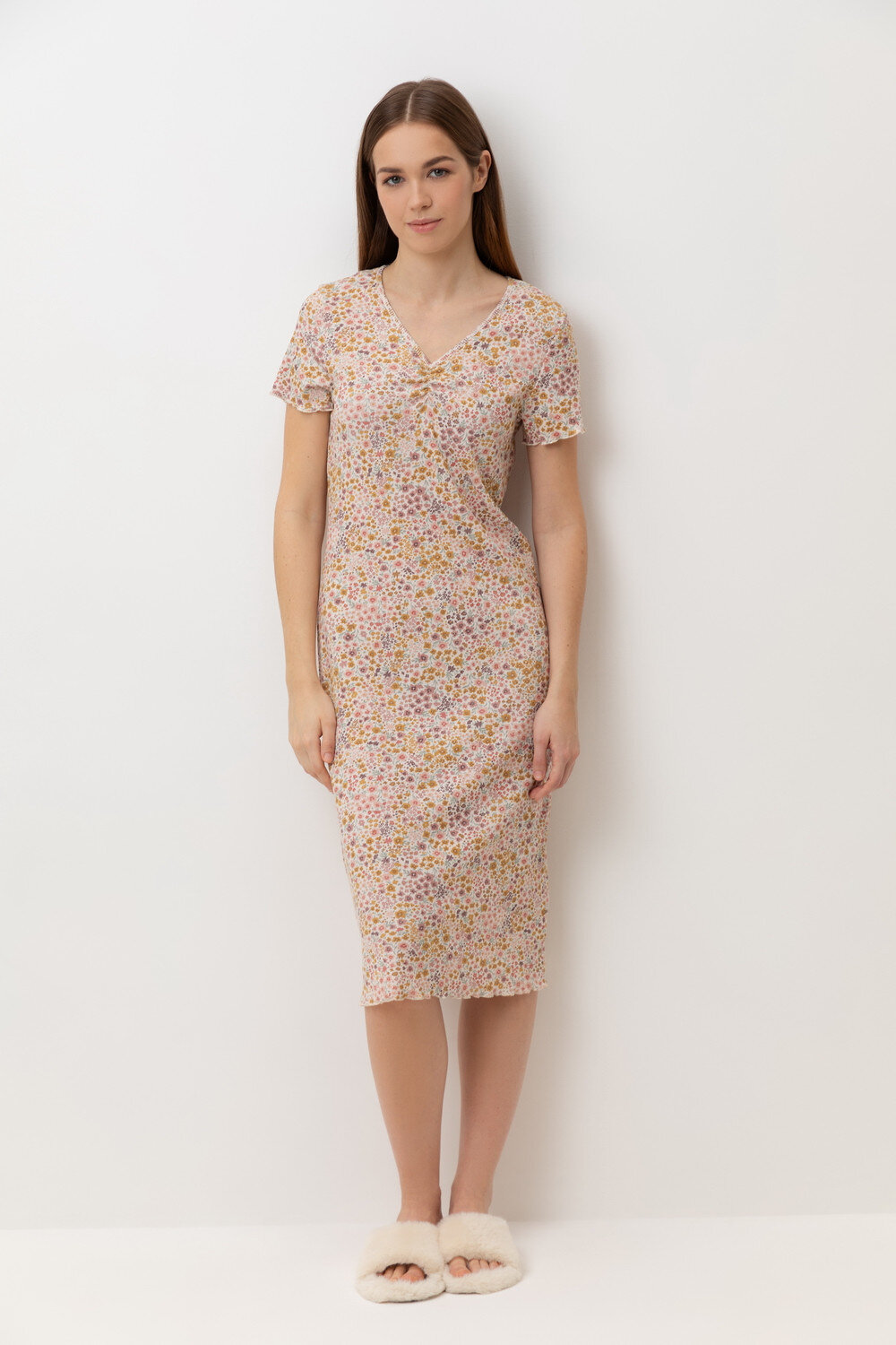 Комфортная сорочка выполнена из высококачественного трикотажа в рубчик. Свободный крой добавляет комфорта во время сна.