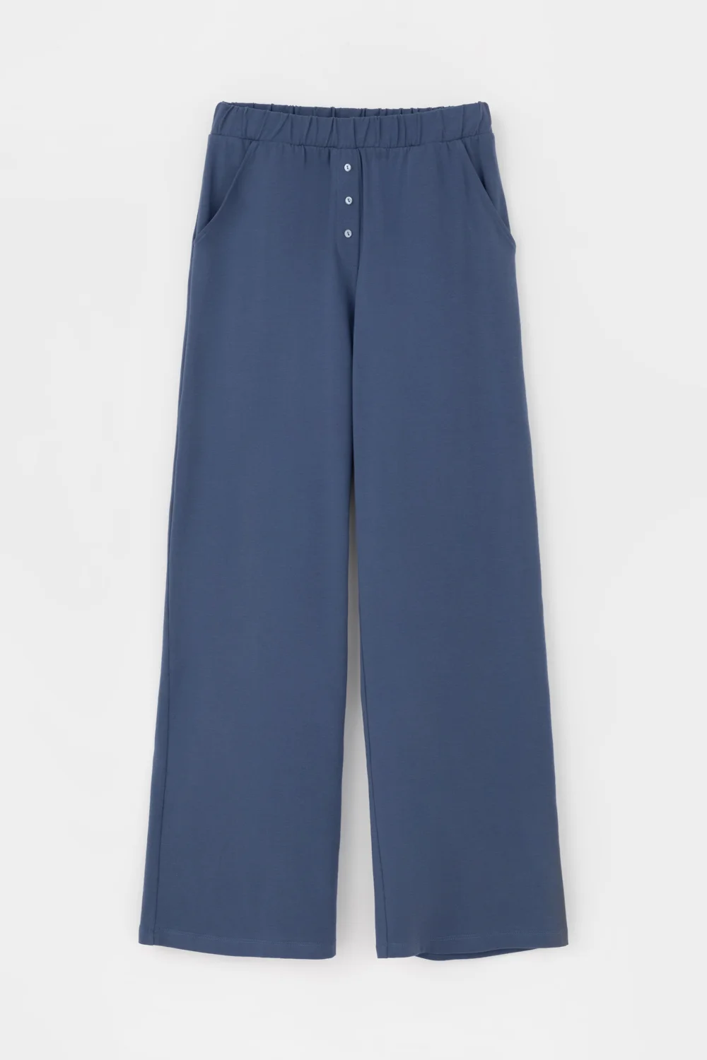 Лёгкие комфортные брюки из трикотажа с добавлением лайкры. Модель с поясом на резинке и боковыми карманами. Низ изделия обработан плоскими швами. Гладкий материал приятен к телу, не теряет форму и позволяет коже дышать.