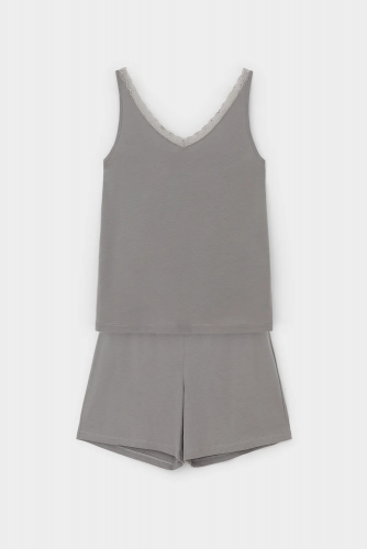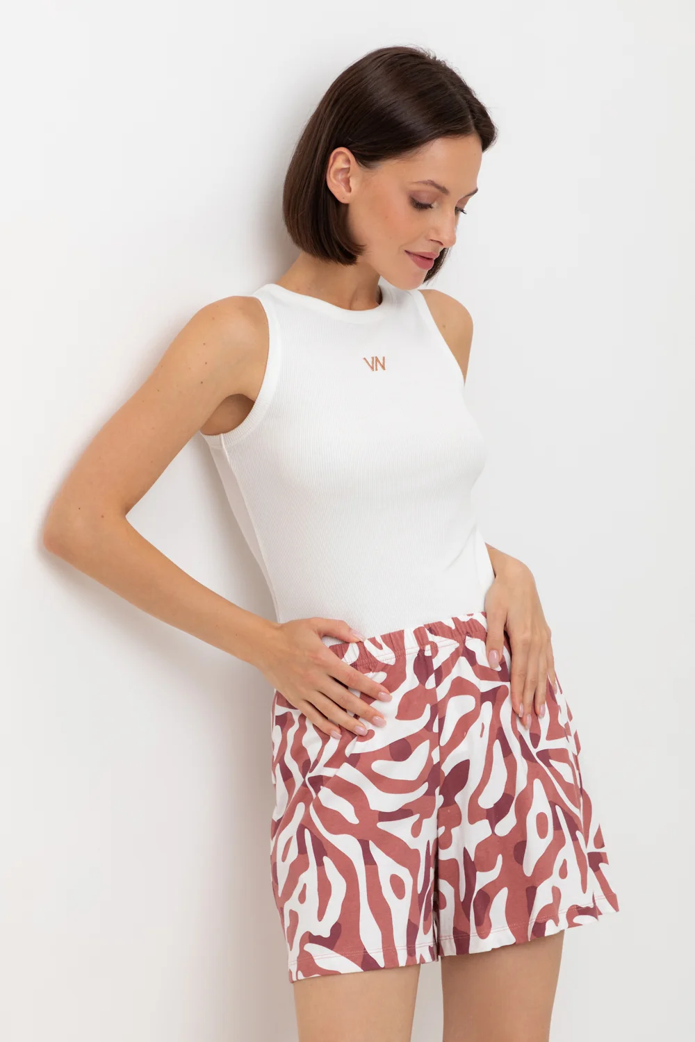 Топ из мягкого эластичного трикотажа в рубчик и шорты из высококачественного гребенного хлопка - это идеальное сочетание уютного комфорта.