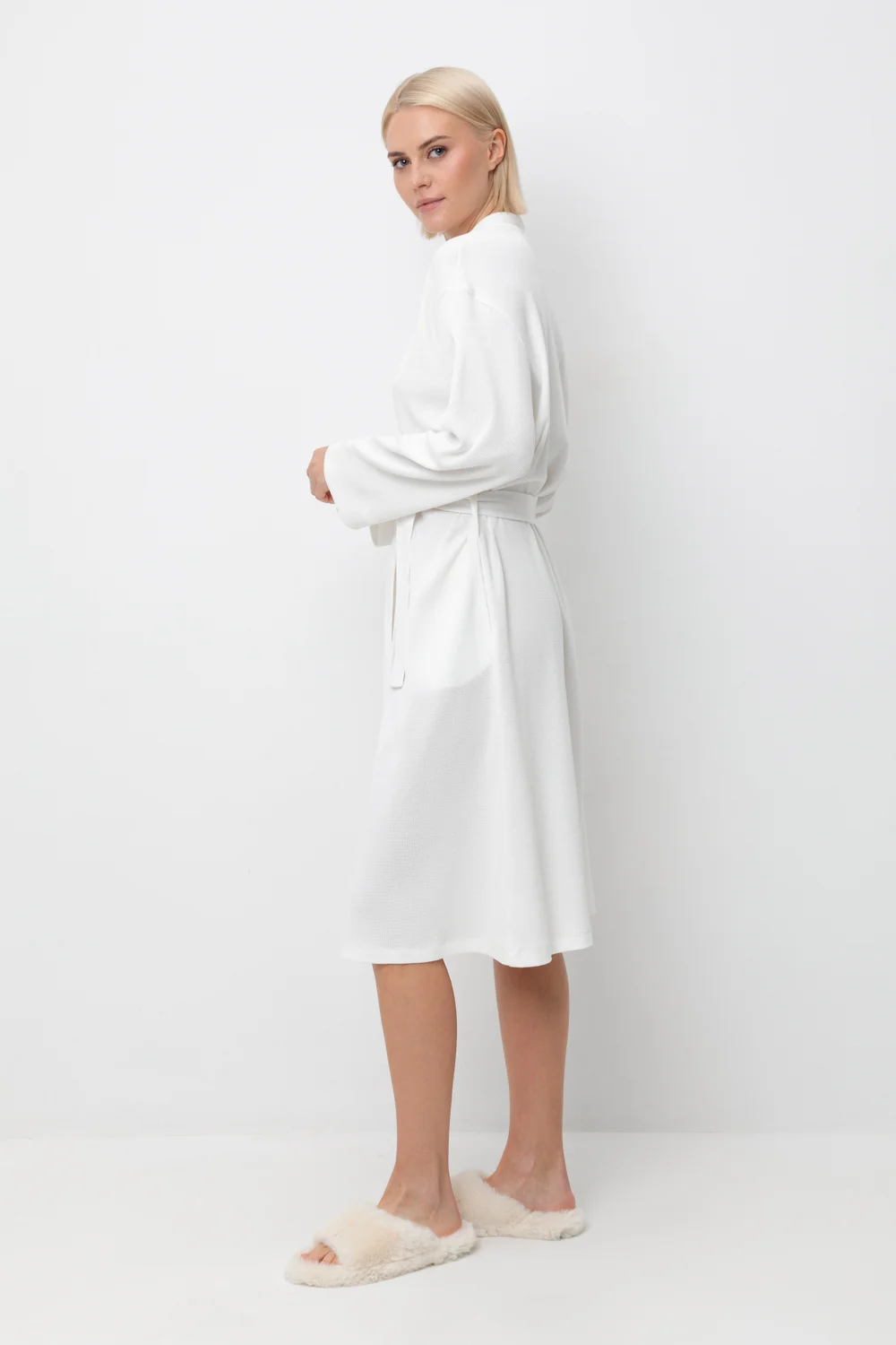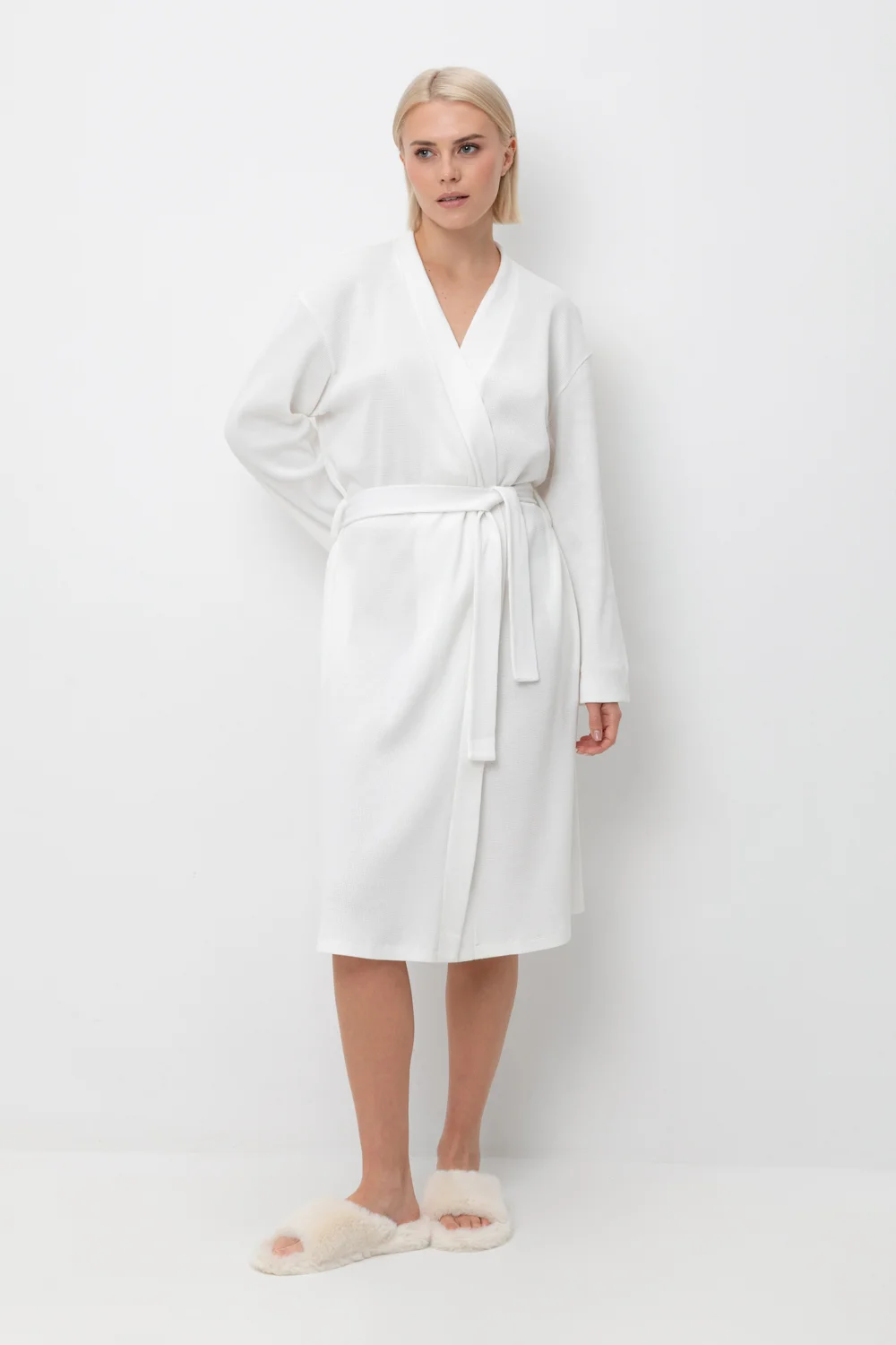 Халат из мягкого объемного трикотажа с добавлением эластичных волокон подарит атмосферу домашнего уюта и комфорта.