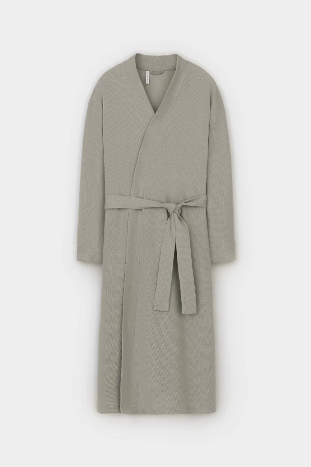 Халат из мягкого объемного трикотажа с добавлением эластичных волокон подарит атмосферу домашнего уюта и комфорта.