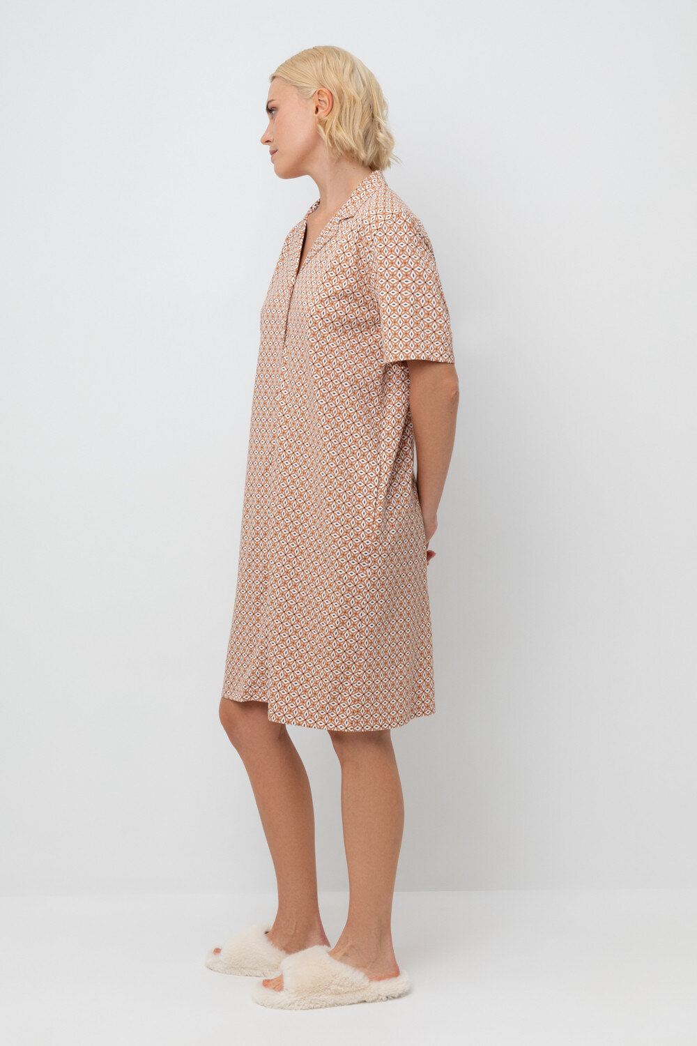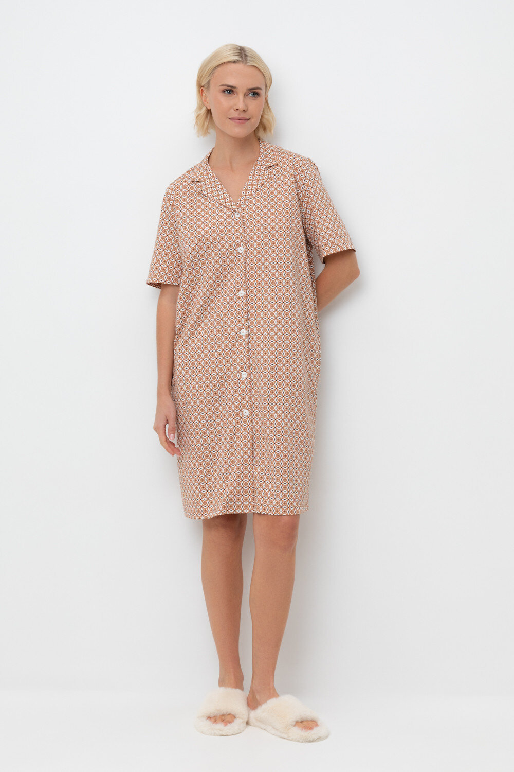 Рубашка-халат из высококачественного гребенного хлопка для домашнего комфорта.