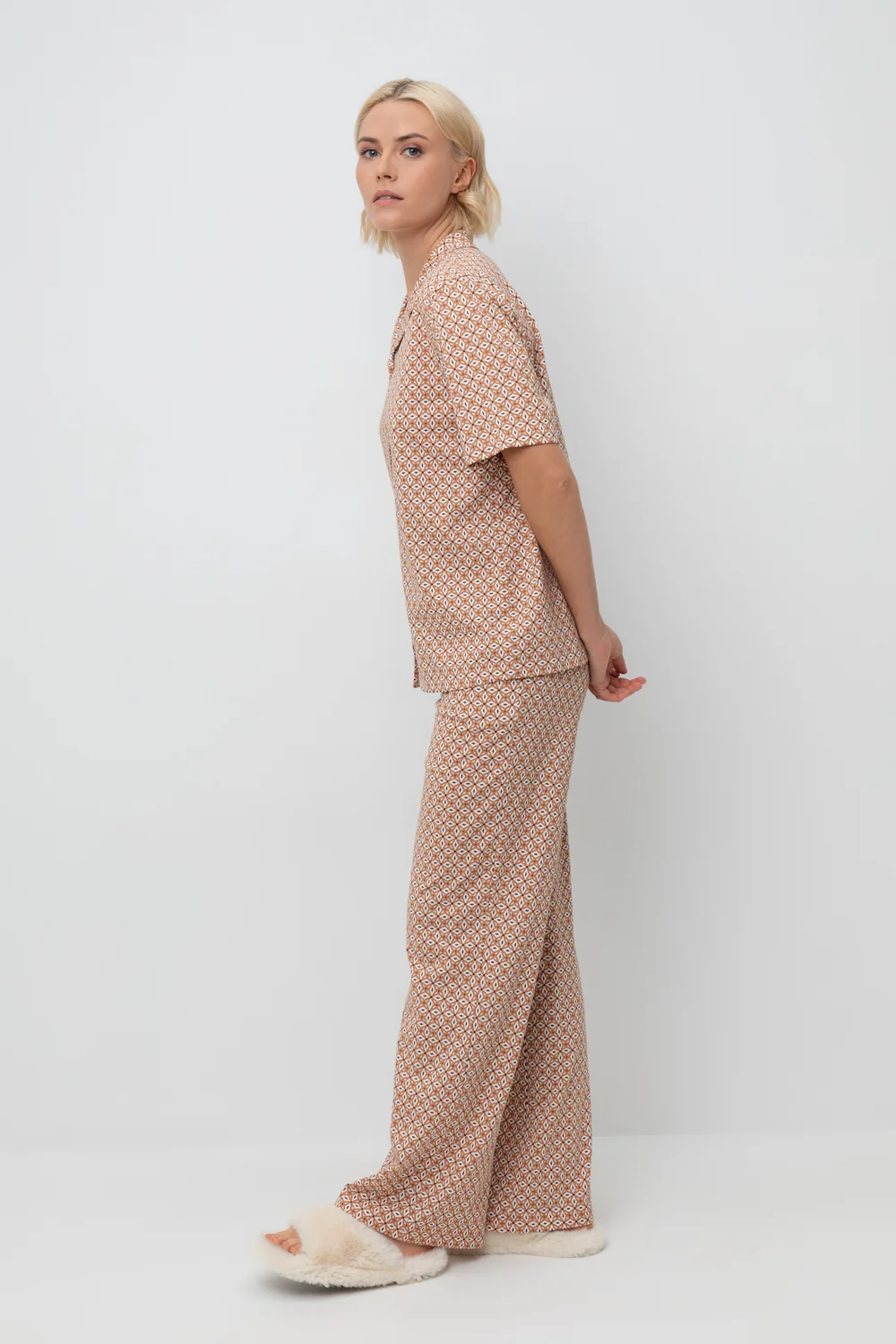 Подарите себе ощущение домашнего уюта с комплектом из высококачественного хлопка. Свободный крой брюк и рубашка идеальной посадки созданы для придания максимального комфорта и практичности.