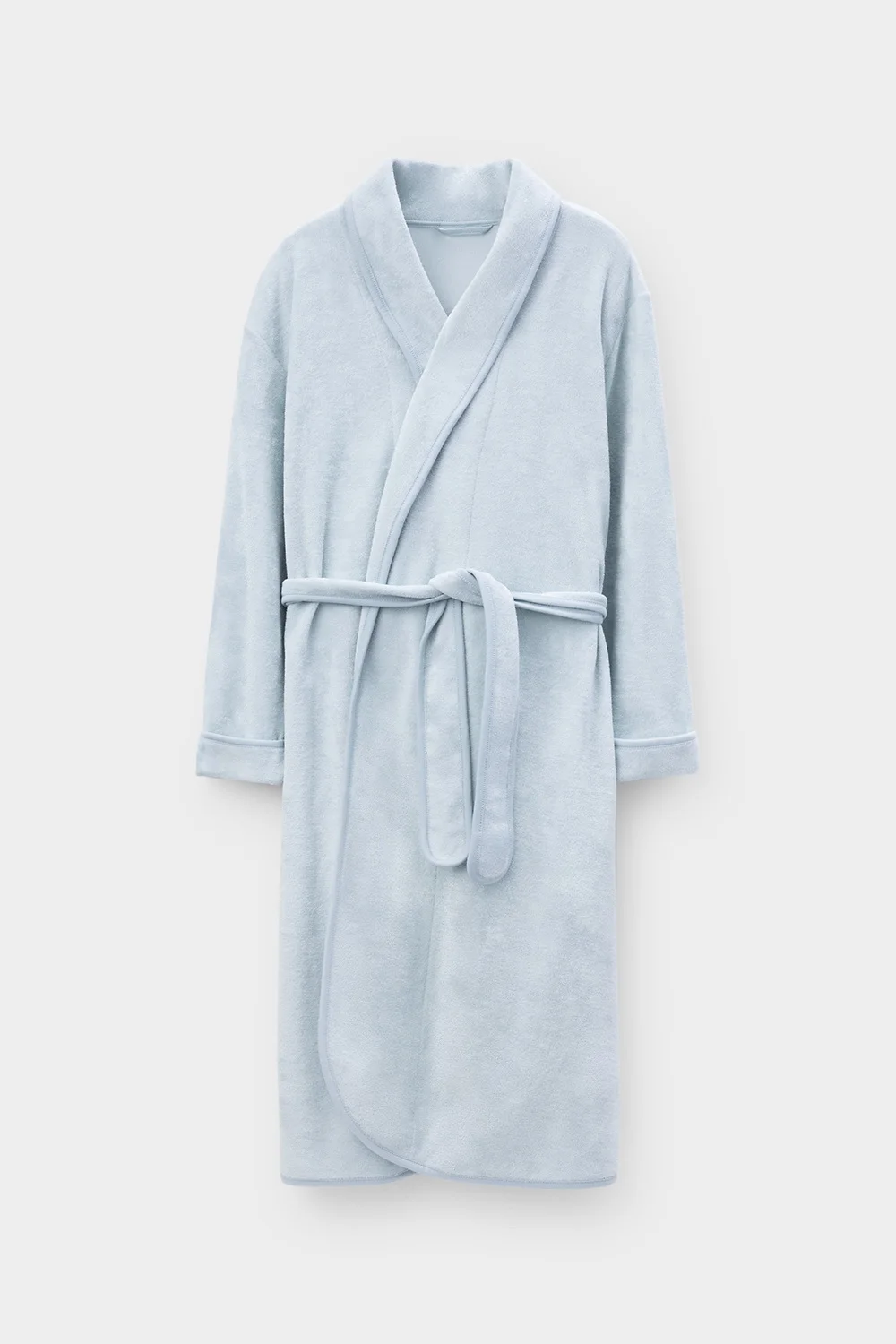 Уютный халат из 100% натурального хлопка на запах с длинными рукавами. В боковых швах два удобных кармана. С помощью пояса можно регулировать посадку и силуэт. Махровое полотно прекрасно впитывает влагу и сохраняет тепло.