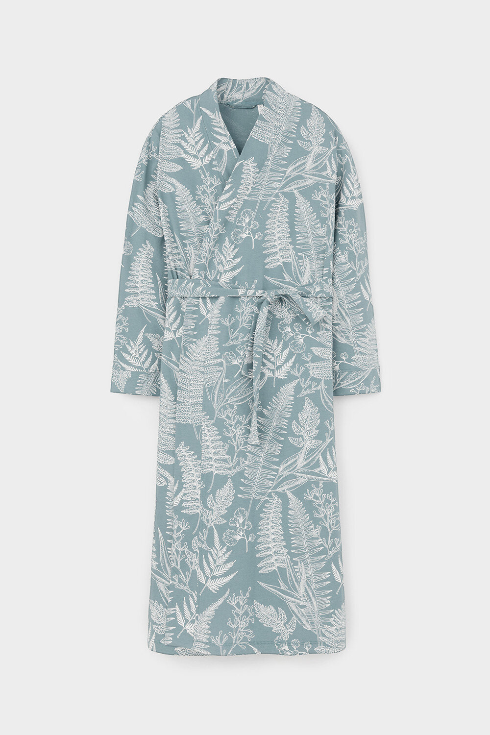 Уютный легкий халат из набивного трикотажа на запах с длинными рукавами. В боковых швах два удобных кармана. С помощью пояса можно регулировать посадку и силуэт. Гладкий материал приятен к телу и позволяет коже дышать.