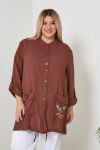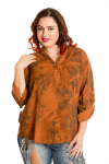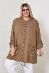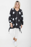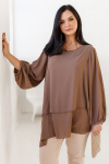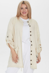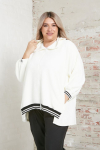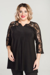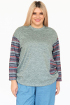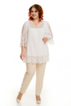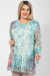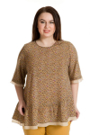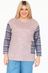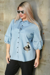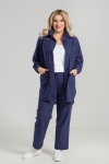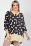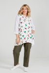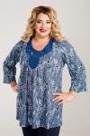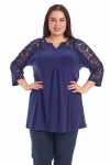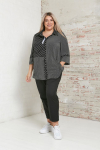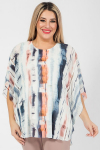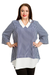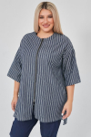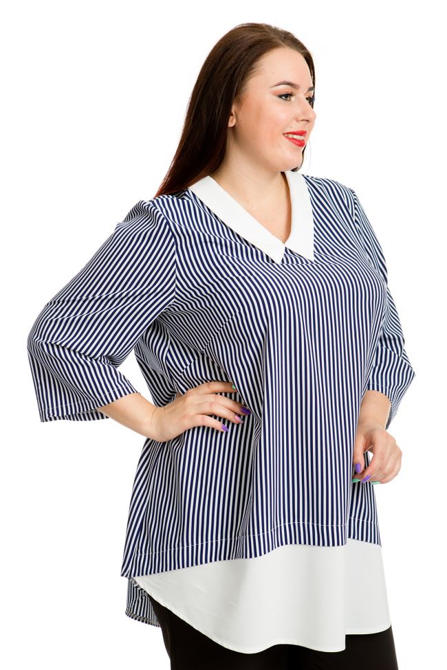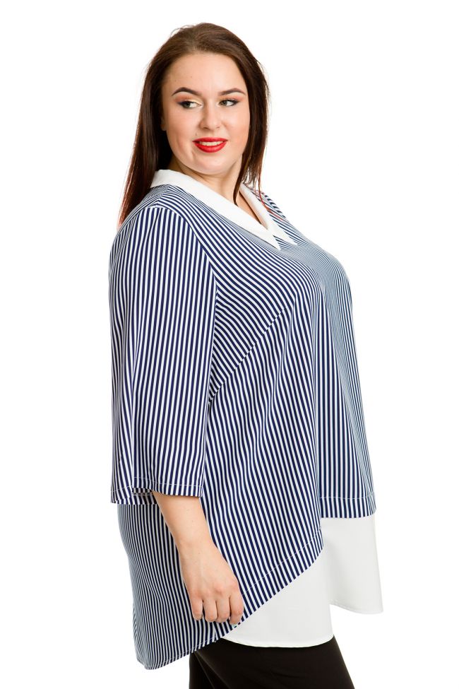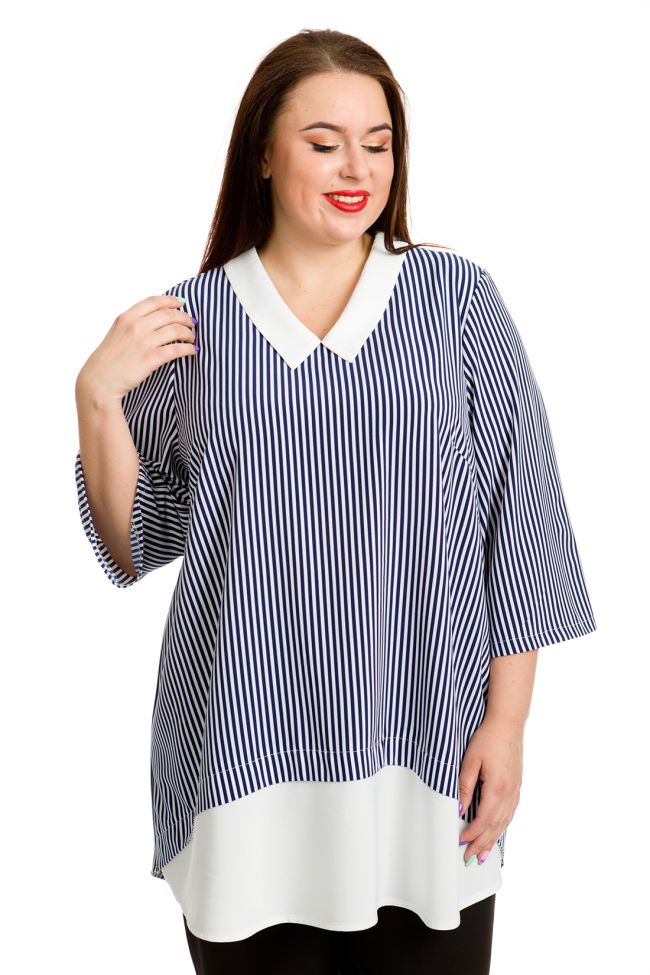 сине-белый Интересная туника свободного силуэта из двух тканей компаньонов "полоска" и однотон. V - образный вырез горловины дополнен  отложным воротничком. Прилегание по груди - за счет вытачек. Рукава втачные длиной за локоть. Низ округлой формы, по переду дополнен притачной деталью в тон воротнику. Спинка с центральной застежкой по всей длине на петли и пуговицы. Туника составит гармоничный комплект с брюками. Замечательный выбор для создания комфортных и приятных образов.