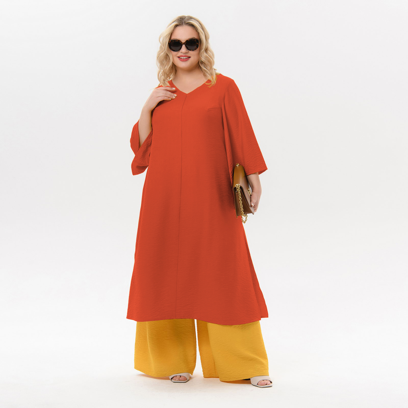Туника длинная с разрезами, цвет "паприка"