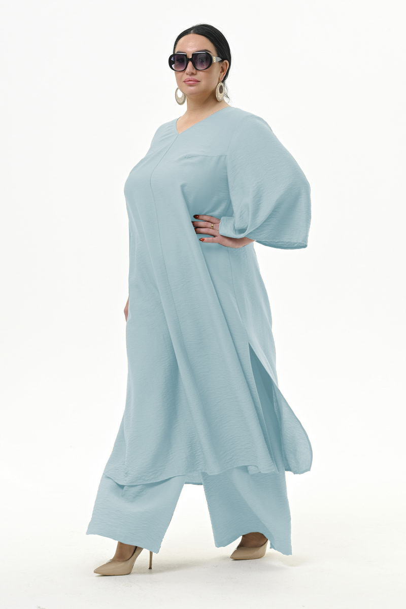 Туника длинная с разрезами из фактурной вискозы,цвет "небесный"