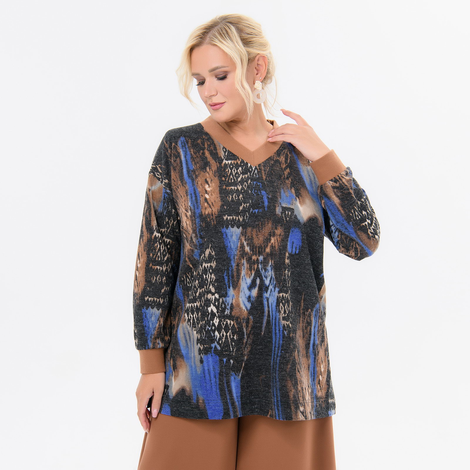 Туника А-силуэта, с V-вырезом горловины, слегка расклешенная к низу за счет боковых швов, из искусственной ангоры.