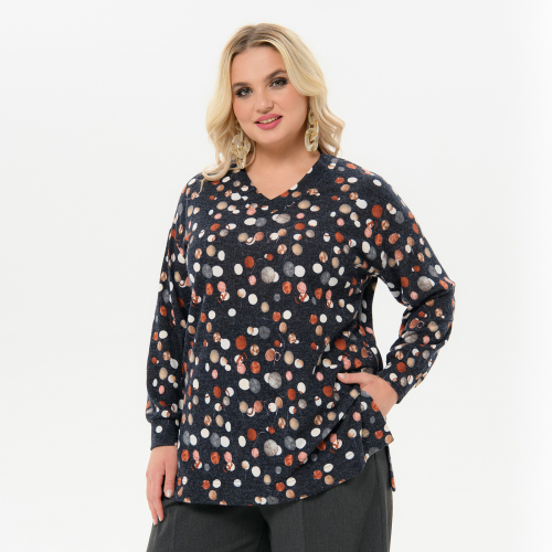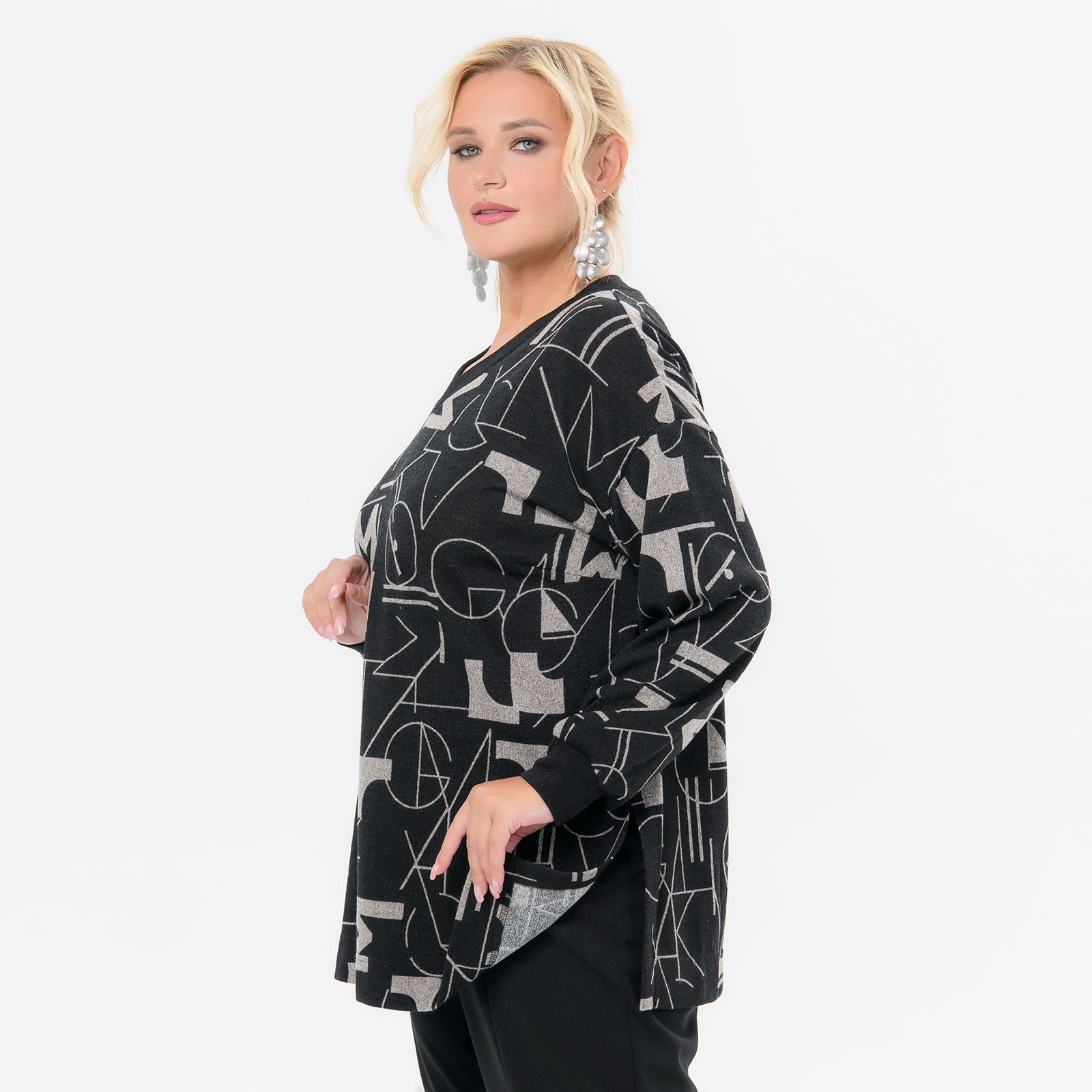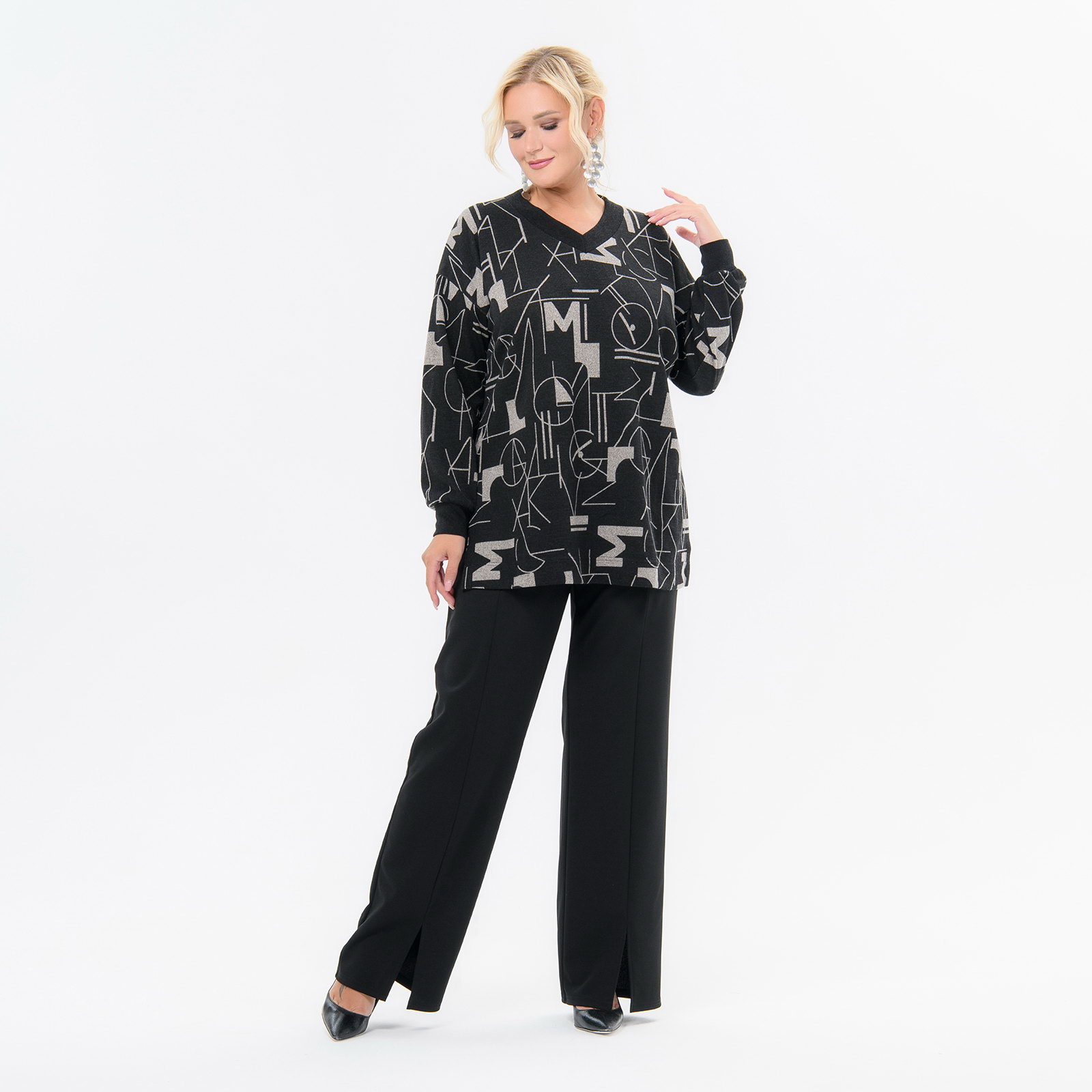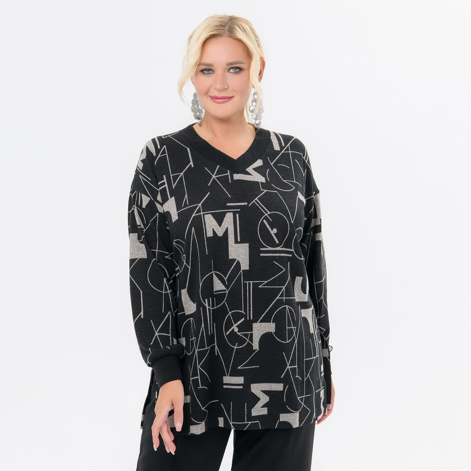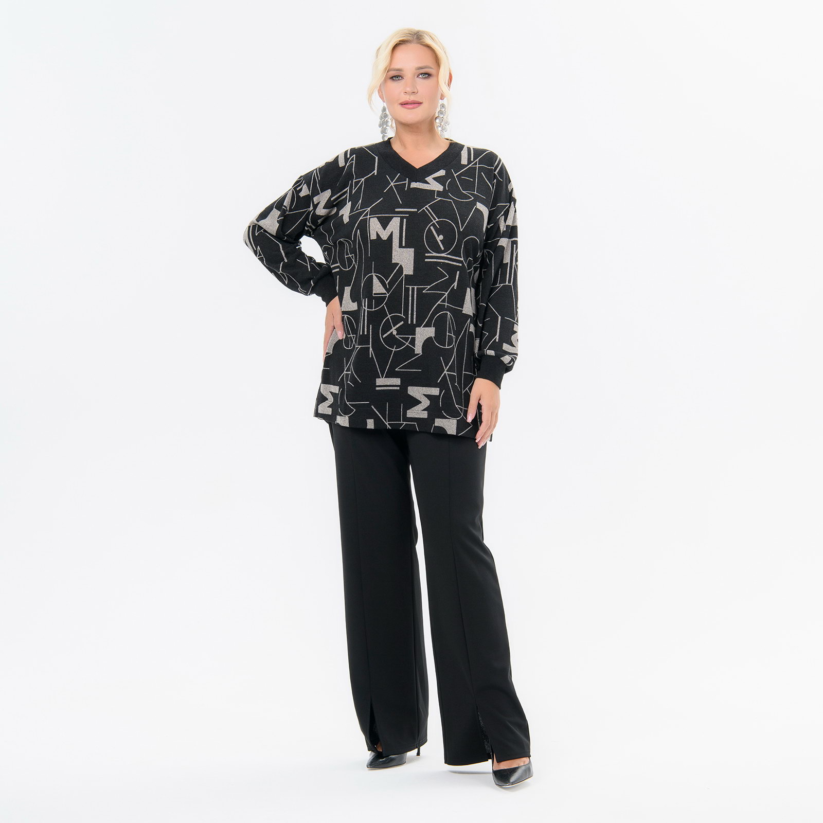 Туника А-силуэта, с V-вырезом горловины, слегка расклешенная к низу за счет боковых швов, из искусственной ангоры.
