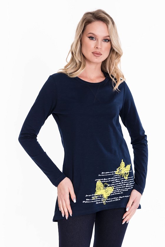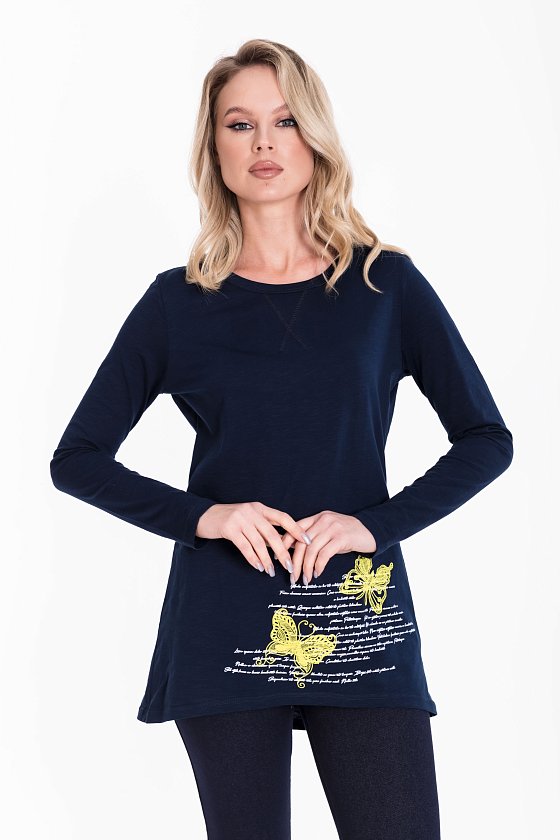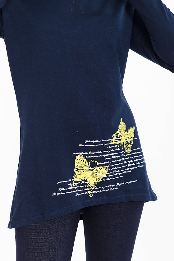 Спереди расположен принт, который добавляет тунике индивидуальности. Этот элемент декора привлечет внимание и сделает ваш образ запоминающимся.
