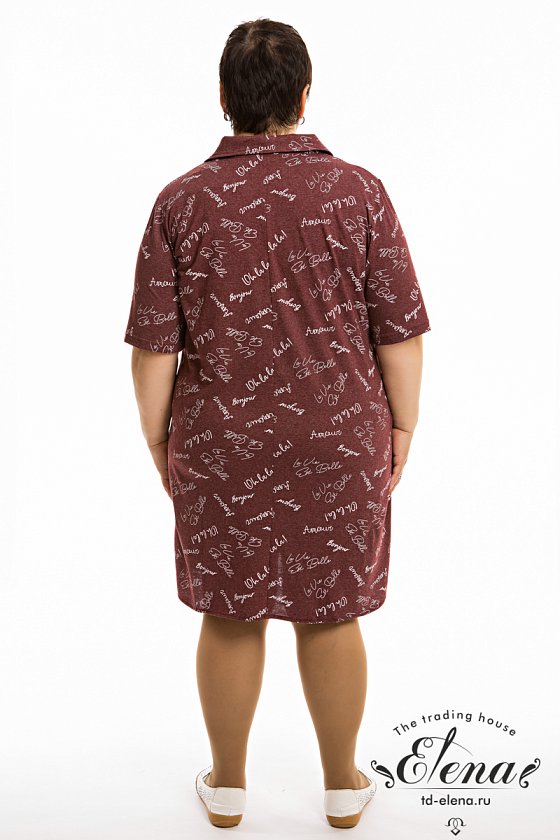 Туника выполнена из х/б полотна с набивным рисунком. Застёжка на пуговицы до пояса. Воротник отложной, рукава короткие, низ туники со скруглением к боковым швам. Спереди расположены карманы.