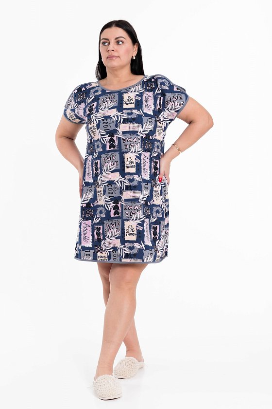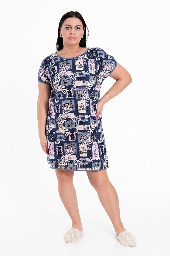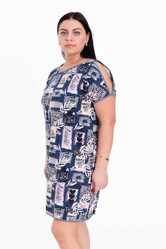 Туника выполнена из кулирки, 100% хлопок. Горловина круглая, на рукавах декоративные разрезы. Детали туники обработаны бейкой.