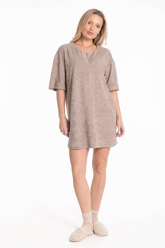 Женская туника из однотонной махры — отличный выбор для создания комфортного образа. Туника имеет прямой силуэт, который подходит для разных типов фигур, и спущенную линию плеча, что придаёт модели изысканность. Рукав туники доходит до локтя, что обеспечивает удобство и свободу движений. Вырез дополнен разрезом и оформлен планкой, что добавляет изделию изюминку. Такая туника идеально подойдёт для повседневной носки. Изготовленная из натуральной ткани, туника обеспечит комфорт в течение всего дня.