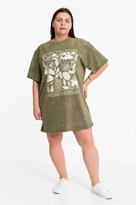 Туника свободного силуэта выполнена из хлопкового полотна. Прямой крой с коротким рукавом и круглым вырезом горловины делают ее комфортной и практичной в использовании. Принт на передней части добавляет игривости и оригинальности к изделию, придавая индивидуальность.Эта туника будет отличным дополнением к гардеробу. Уютный материал и стильный дизайн делают ее практичным и привлекательным элементом одежды.