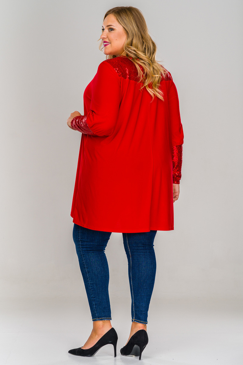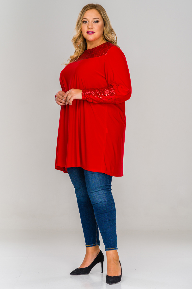 Туника нарядная, кокетка и манжеты из пайеток, красная