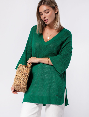 Пляжная туника полупрозрачной вязки из хлопка с вискозой D39.279 зеленый