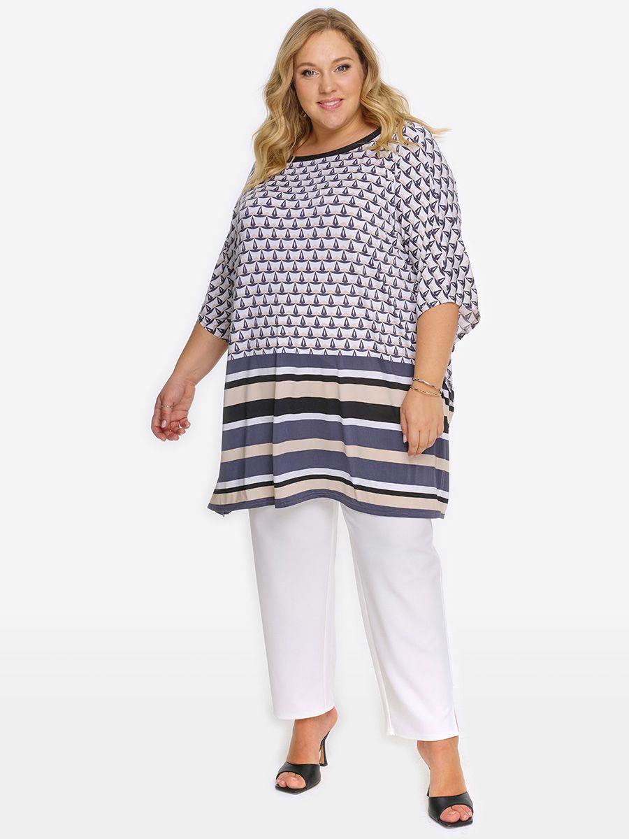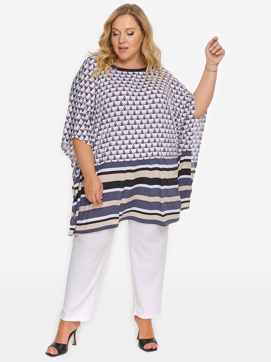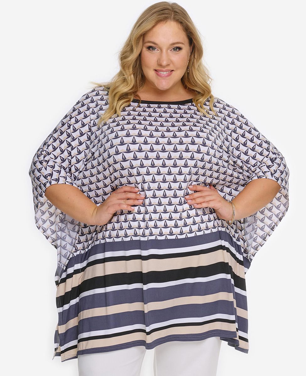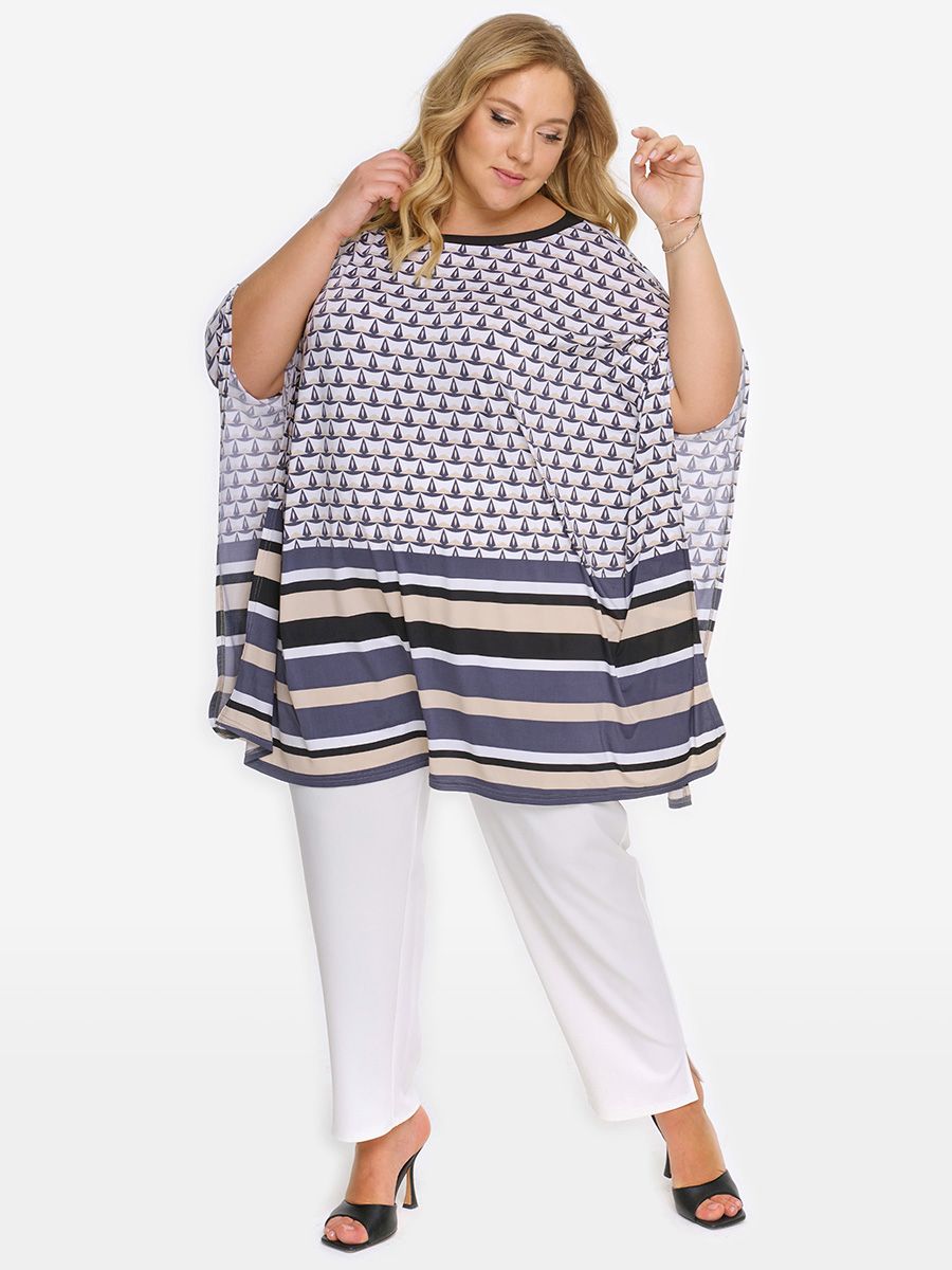 Туника-пончо, принт купон "кораблики"