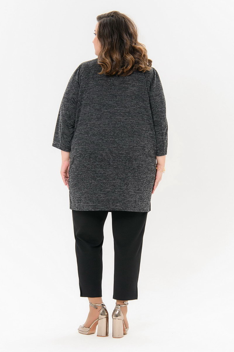 Туника прямого силуэта из меланжевого джерси. По передней половинке фигурные рельефные швы, в которых обработаны карманы.
