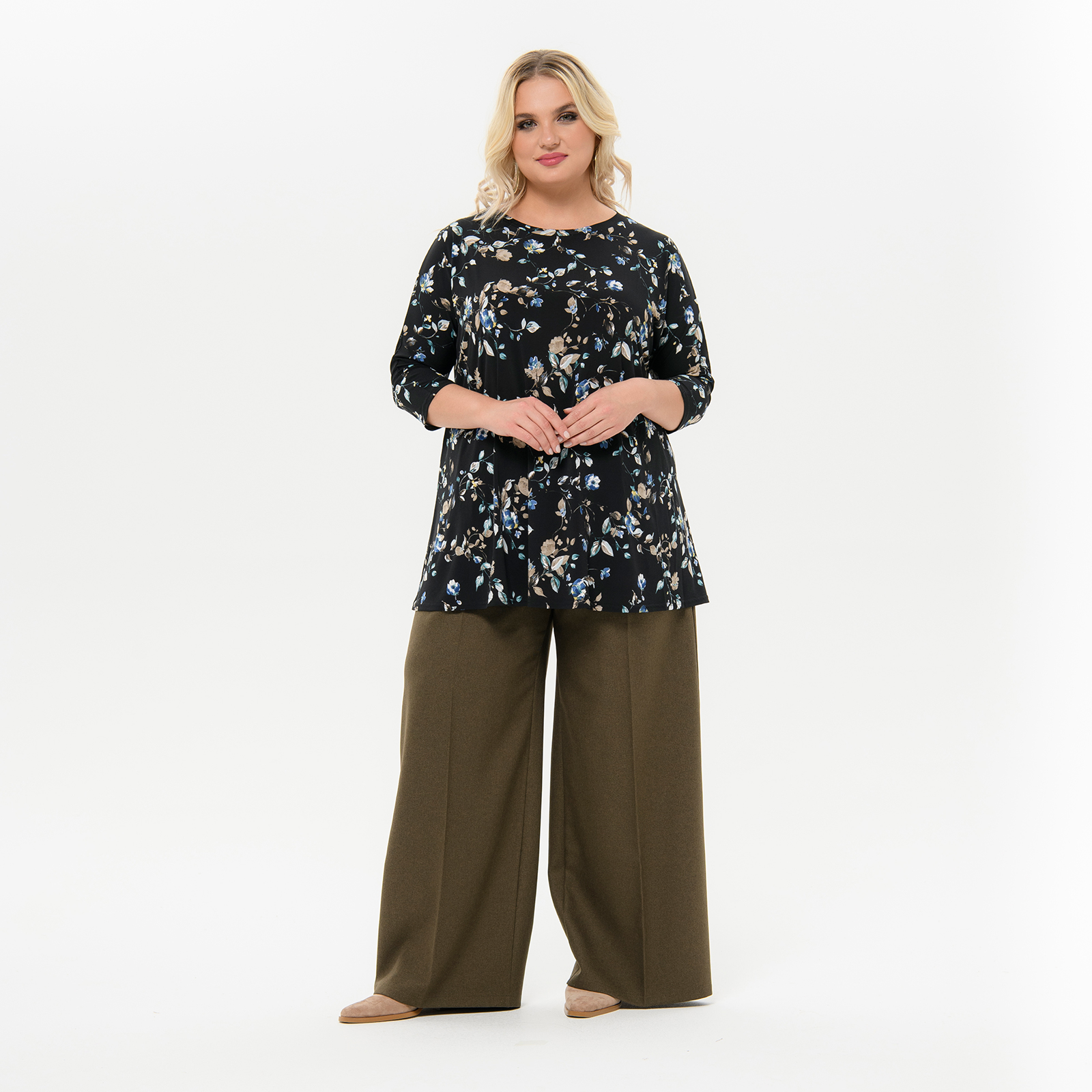 Туника свободная из принтованного трикотажа-масло. Рукав цельнокроенный, 3/4