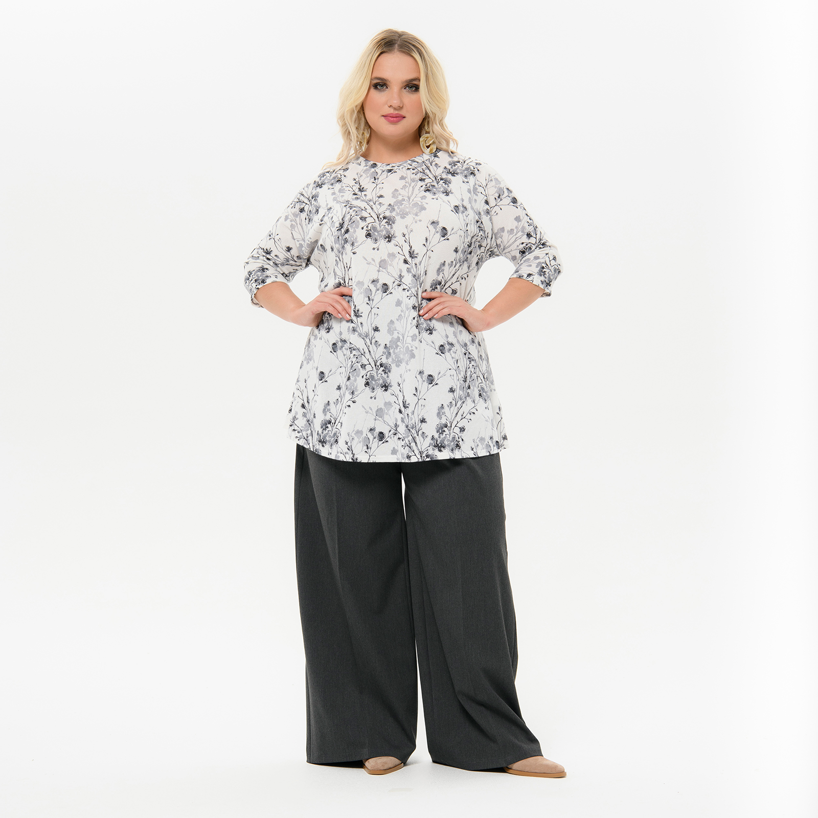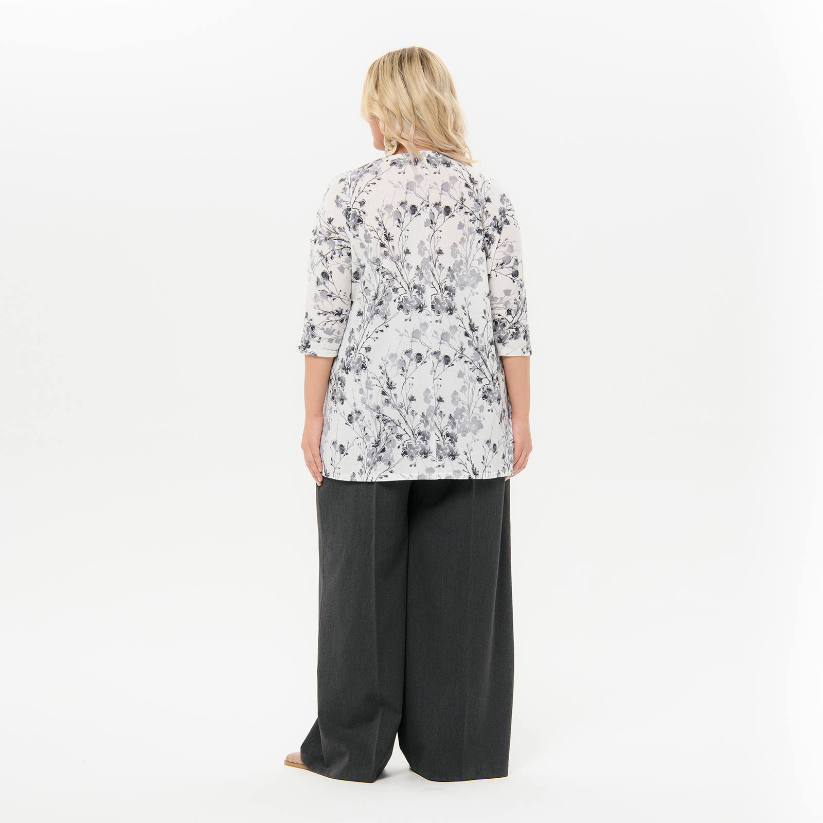 Туника с цельнокроеным рукавом из джерси - ангора, нежно-серая, принт цветочный
