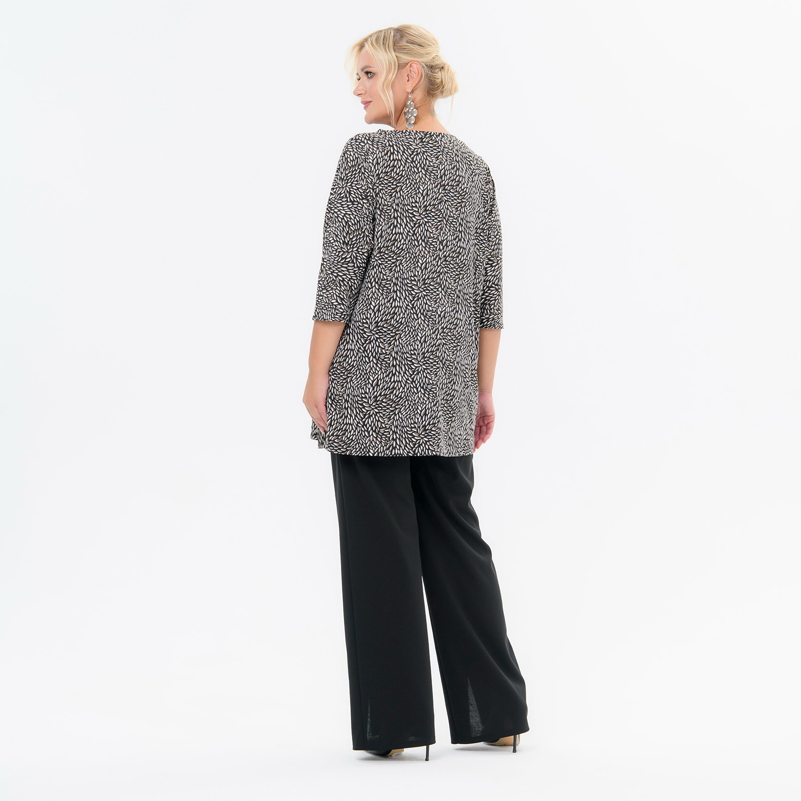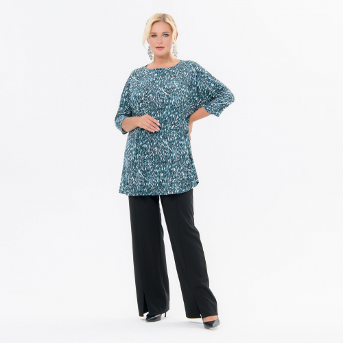 Туника свободная из принтованного трикотажа-масло. Рукав цельнокроенный, 3/4