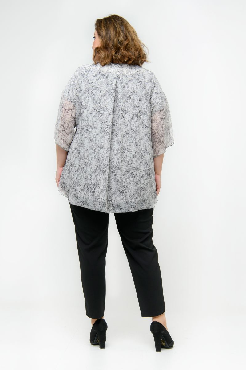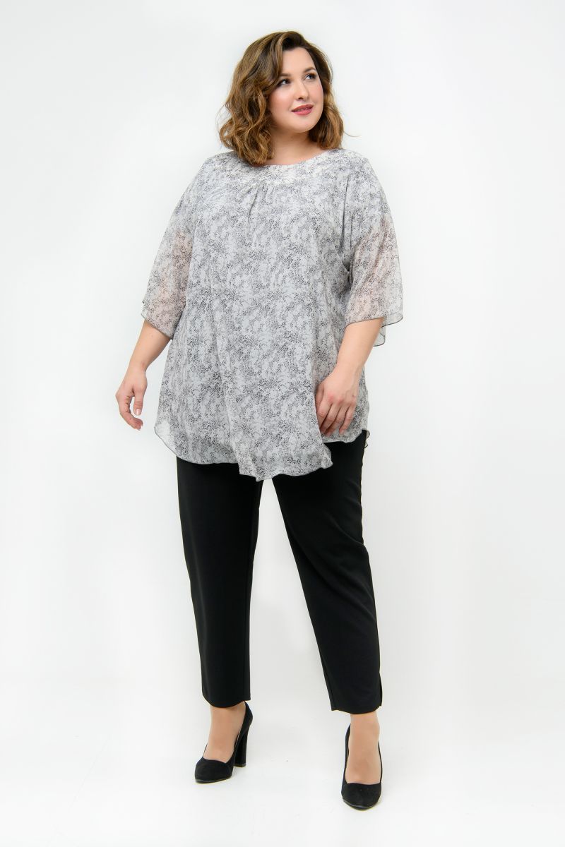 Туника с фигурной кокеткой, шифон принт нежный