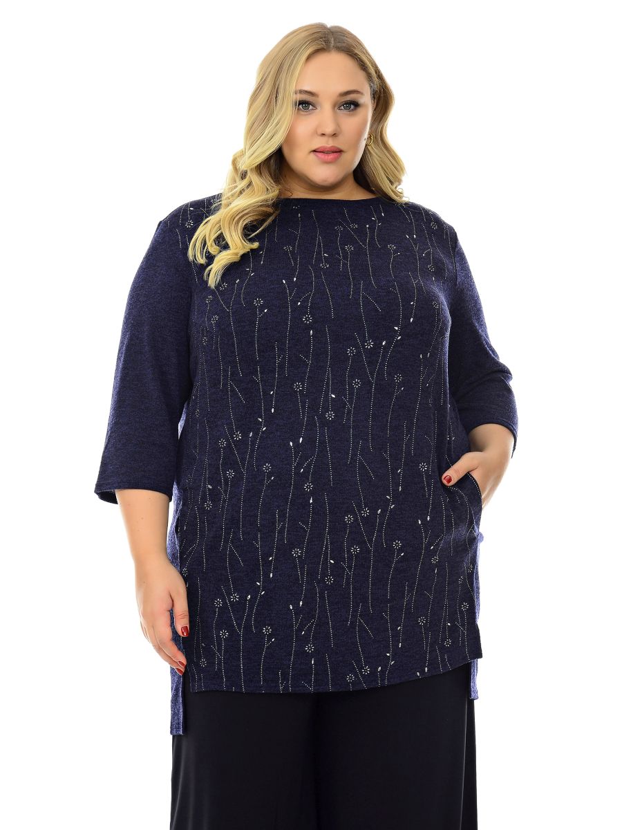 Туника с карманами, джерси ангора темно-синяя
