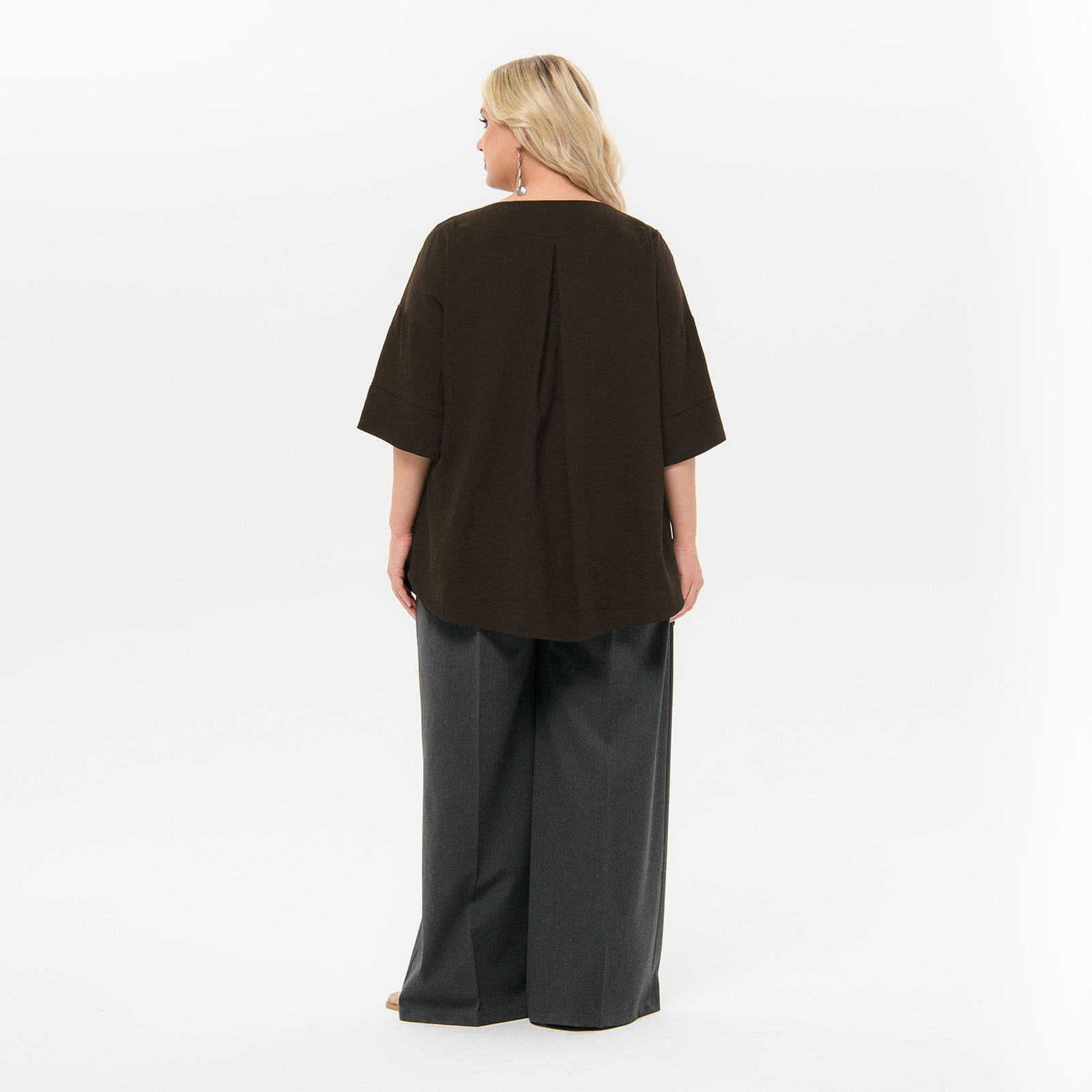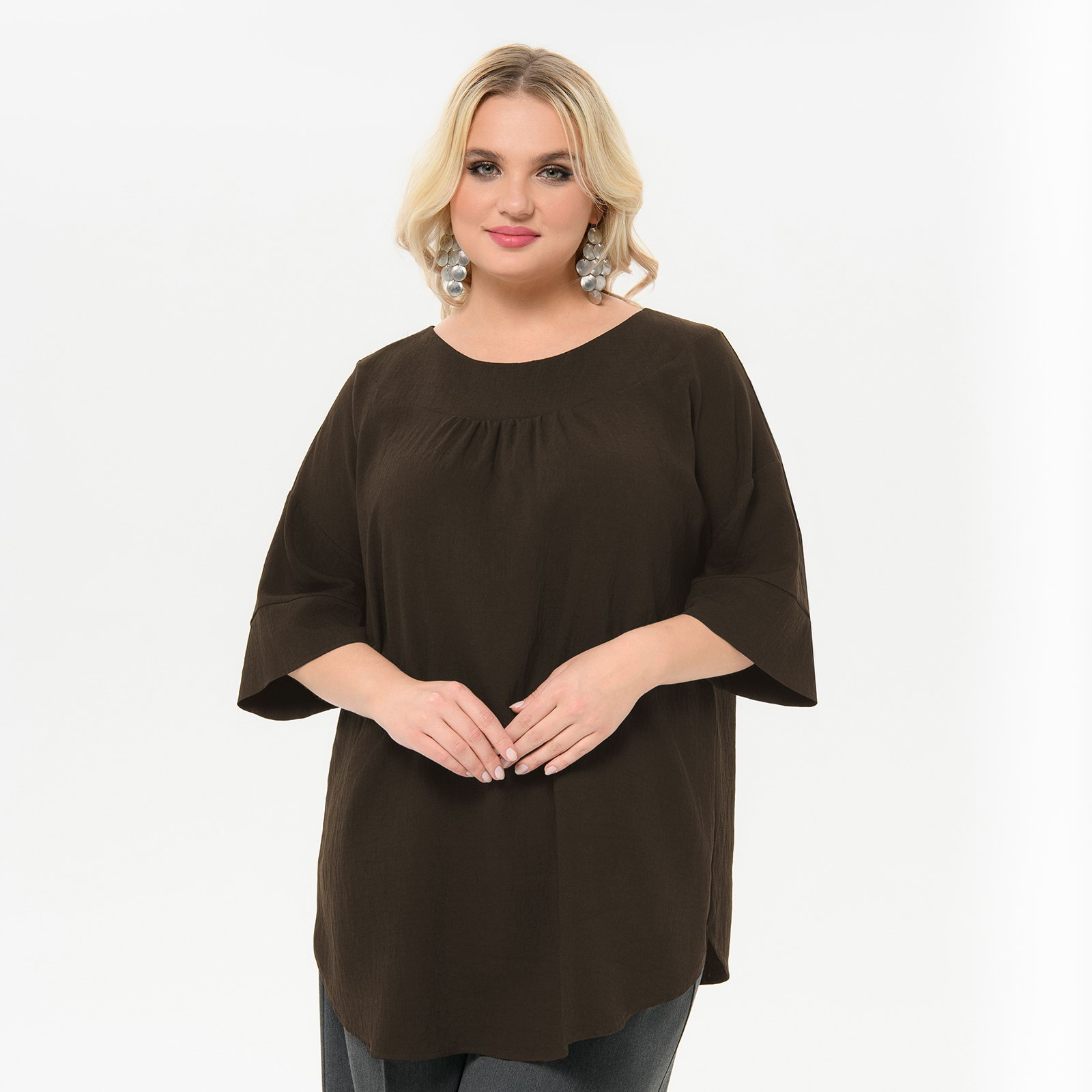 Туника с округлой обтачкой горловины, вискоза "шоколад"