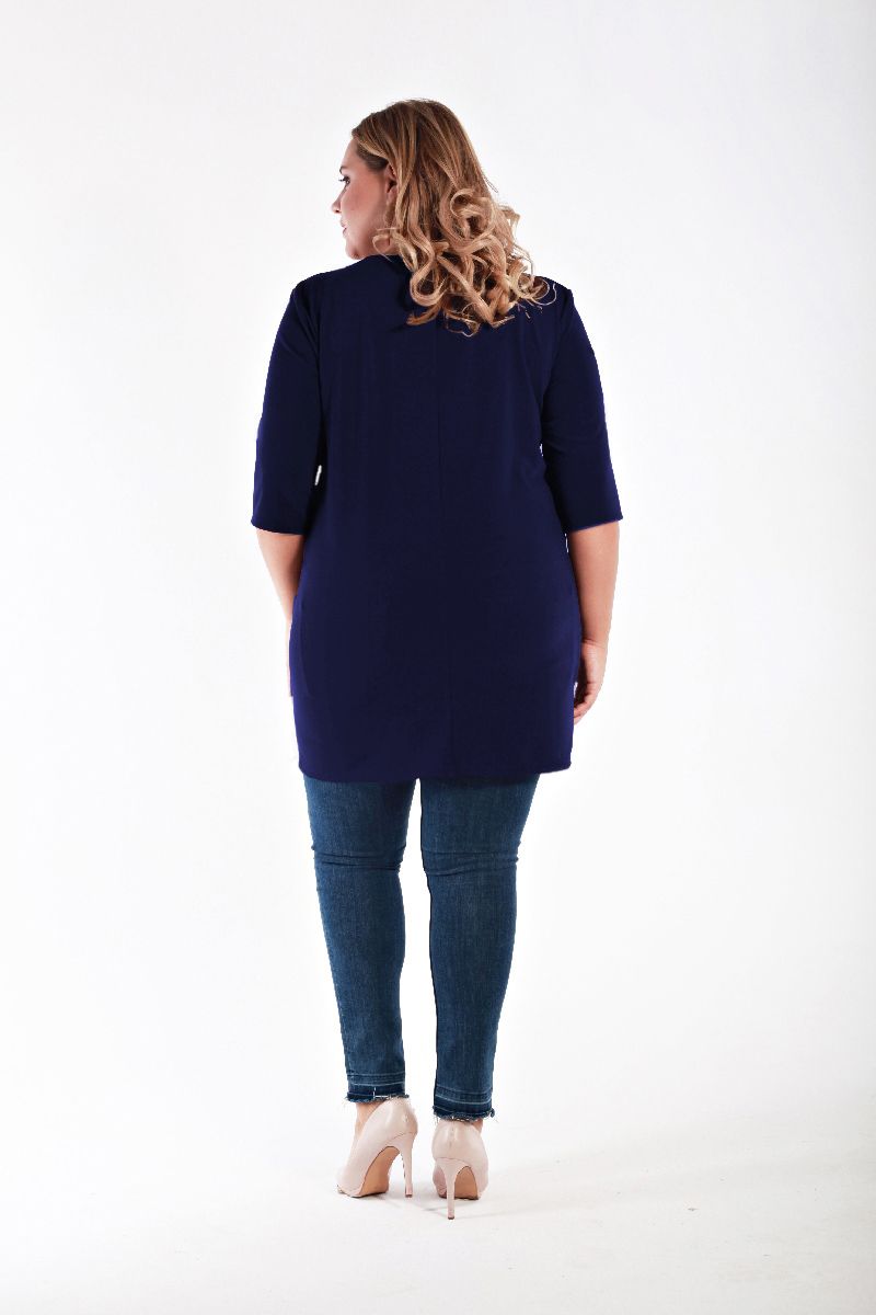 Туника с разрезами, карманы в рельефах, темно-синяя