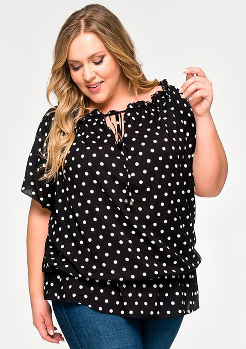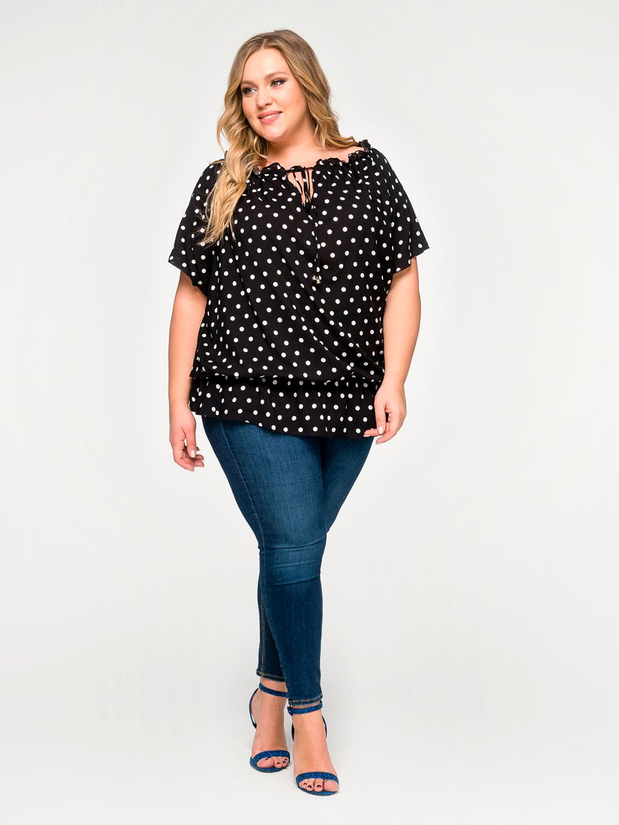 Туника с резинкой по горловине, штапель принт "горошек"