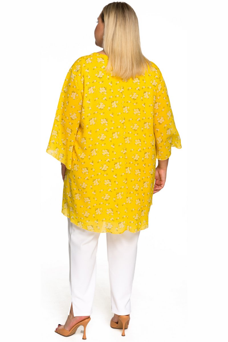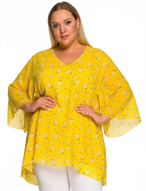 Туника свободная асимметричная, шифон принт нежно-желтый